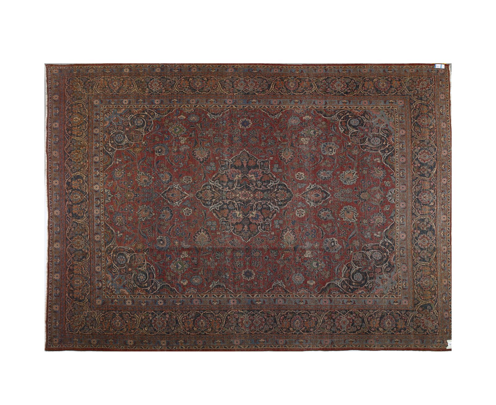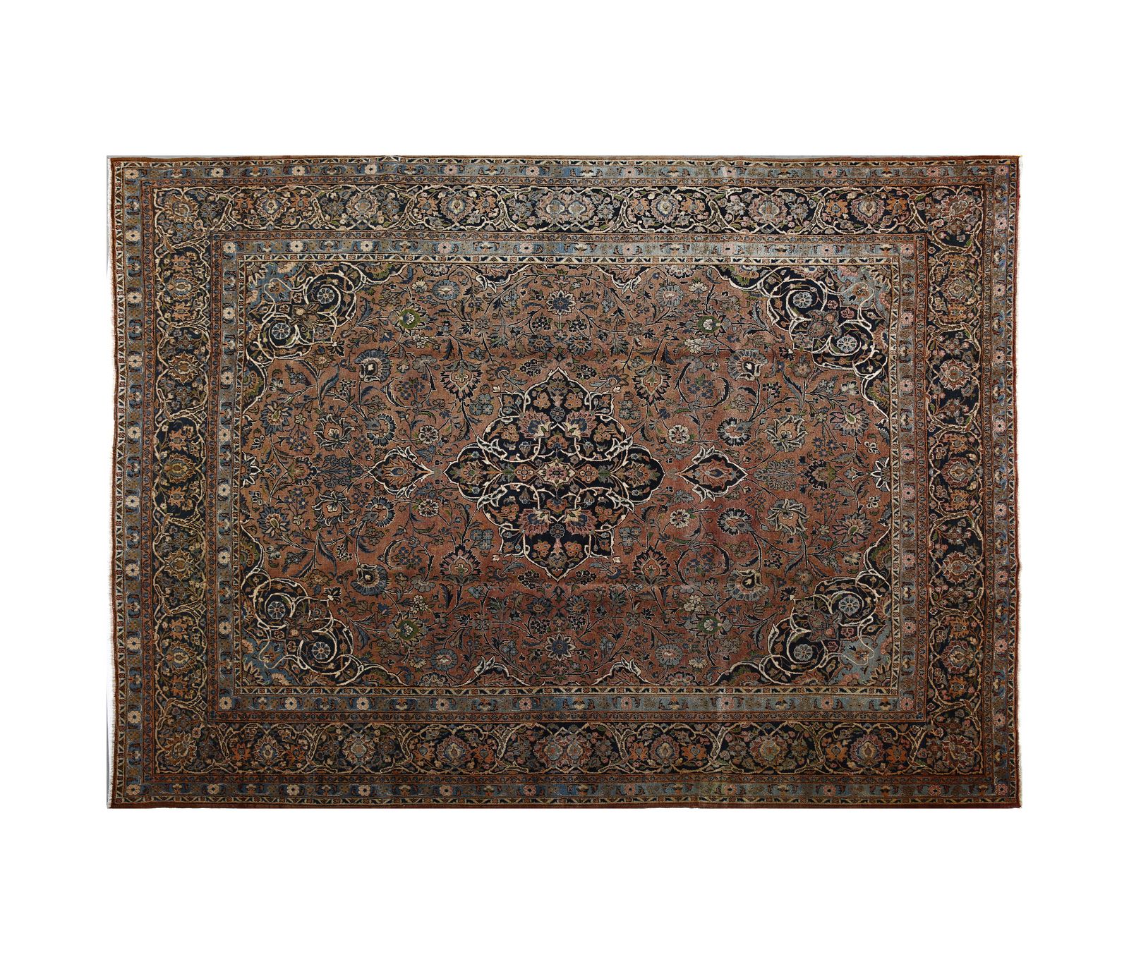 Tappeto persiano con medaglione centrale e motivi fitomorfi su fondo bruno