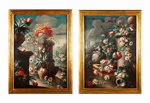 coppia di olii su tela, cm 49x65,5 - in cornice: cm 64x79 I dipinti sono accompagnati da cornici coeve.