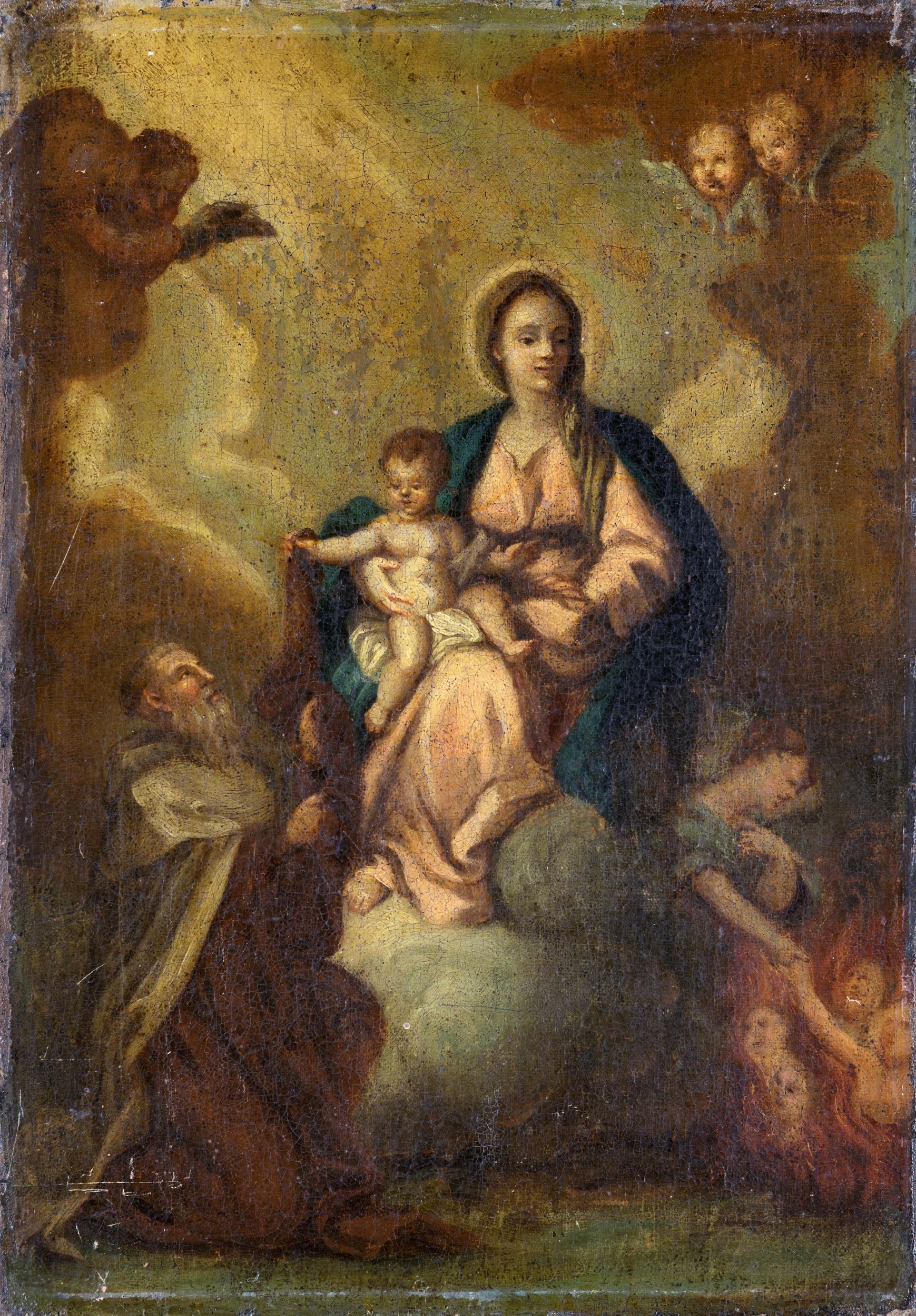 Scuola napoletana del XVII secolo : Madonna col Bambino, angeli e Santi  - Asta Dipinti antichi - Associazione Nazionale - Case d'Asta italiane