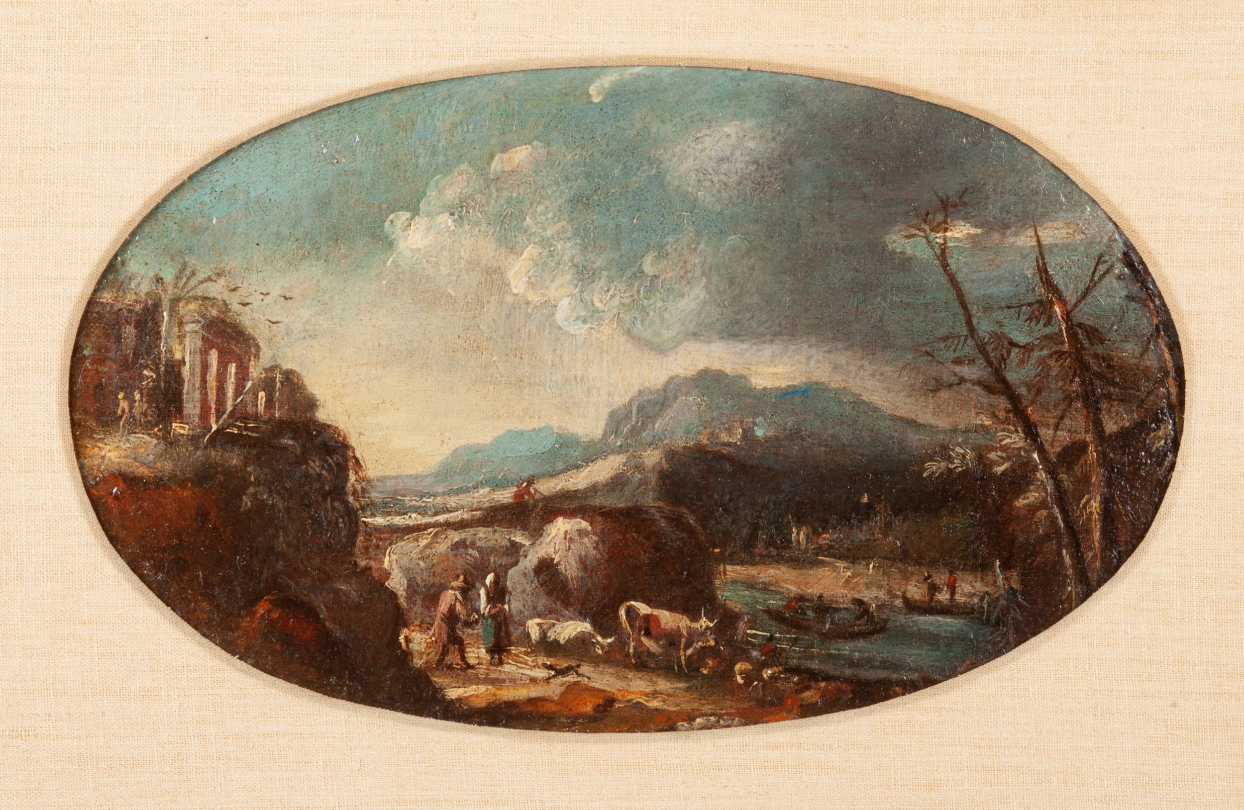 quattro olii su tela ovale, cm 22x36 - con cornice cm 35x51