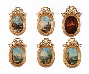 sei olii su tela ovale, cm 29x21 - con cornice cm 50x33