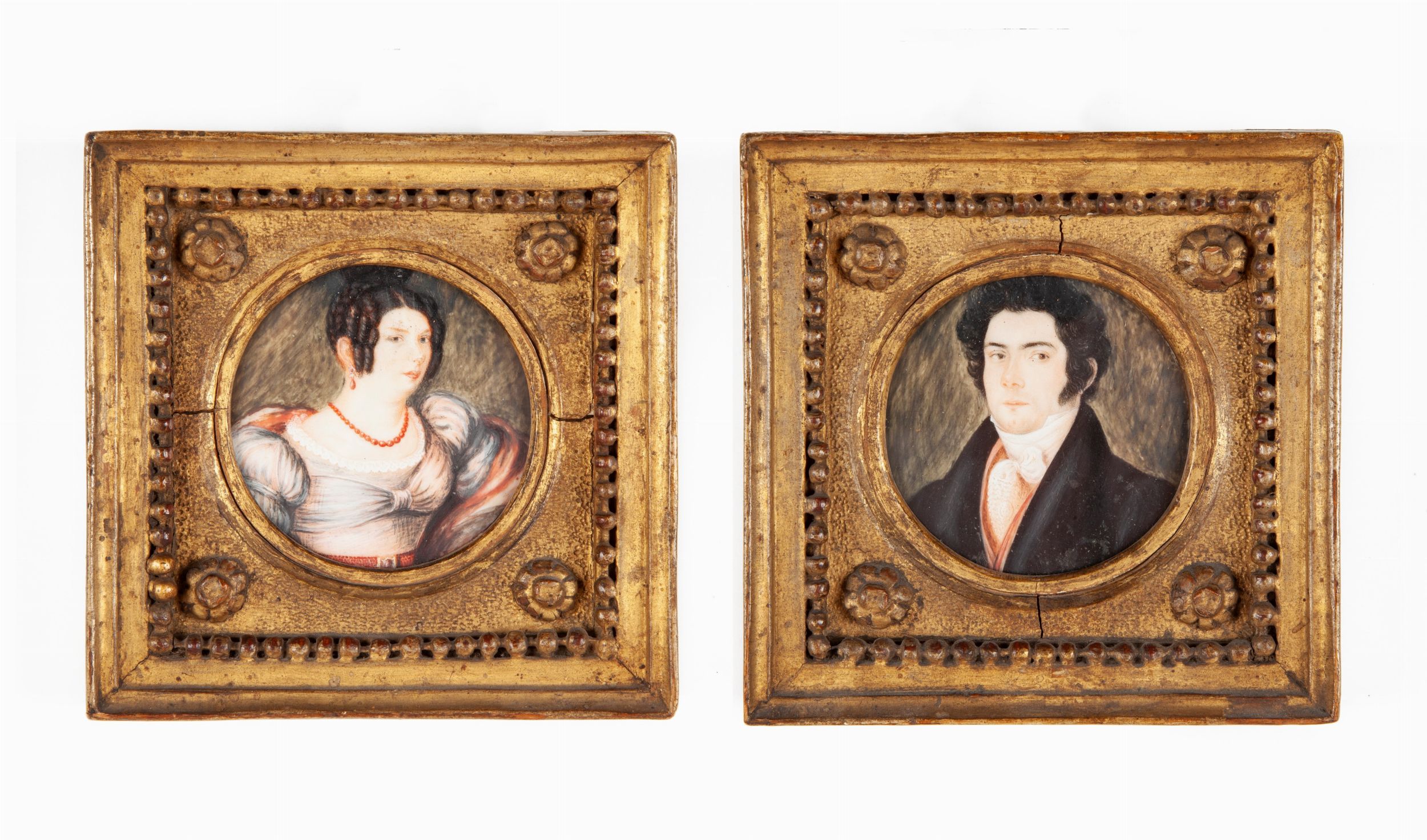 PITTORE DEL XIX SECOLO : Coppia di ritratti in miniatura .  - Asta Dipinti del XIX Secolo - Associazione Nazionale - Case d'Asta italiane