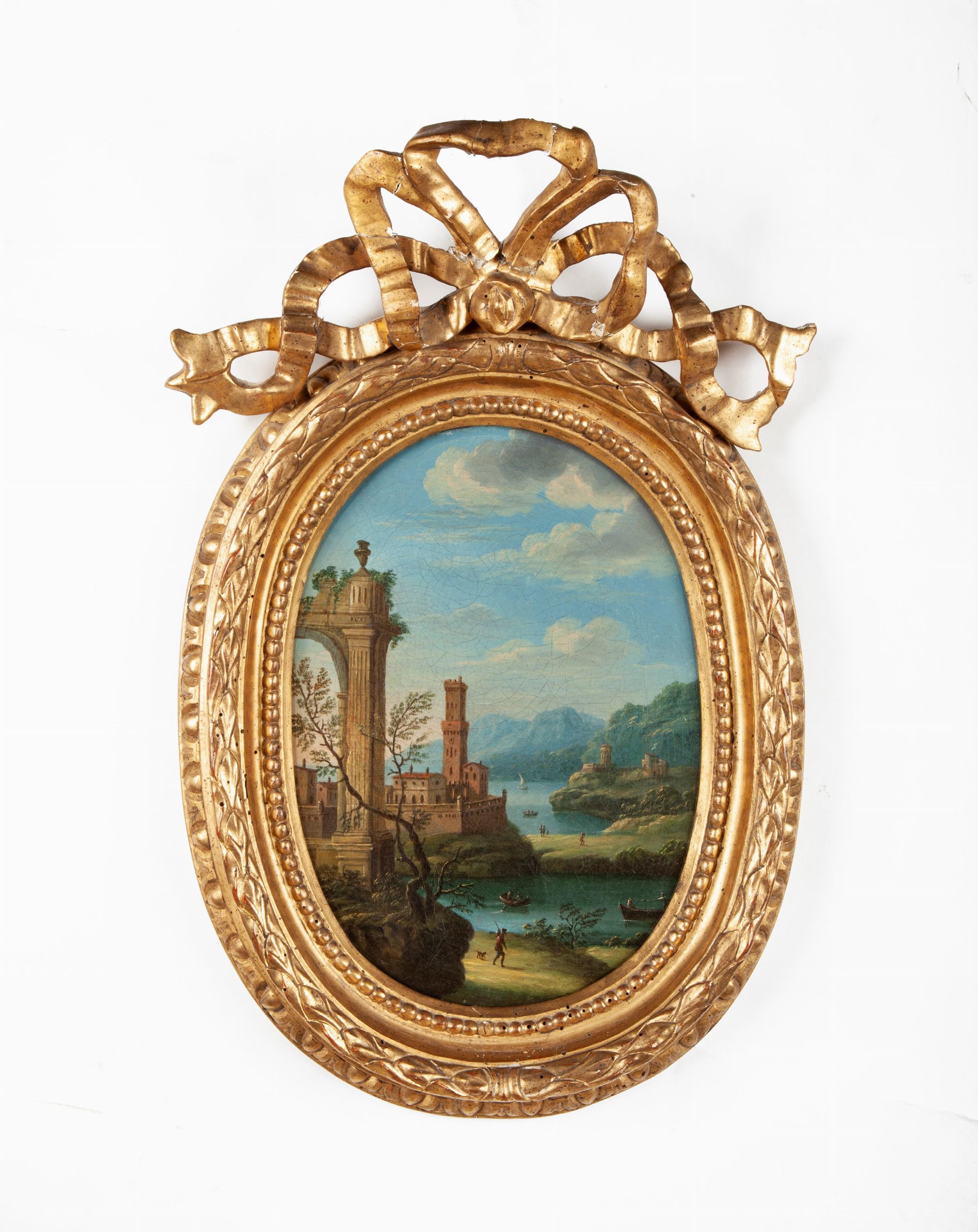 Entro cornici coeve in legno intagliato e dorato. “Orazio Grevembouc, pittore di marine e vedute. Questo degno professore è nato in Milano”. Così descriveva Orazio Grevenbroeck il grande erudito Francesco Maria Gaburri nelle sue Vite. Iniziato giovanissimo alla pittura da suo padre, anch’esso artista nella città meneghina, fin da subito mostrò una particolare predilezione per la natura in tutte le sue declinazioni. Una volta giunto a Napoli divenne famoso per la sua produzione delle vedute del Vesuvio, in particolare durante le sue eruzioni, tanto da aver attirato l’attenzione di Charles de Brosses, che nel suo Grand Tour, cercò invano di comprare alcune sue tele.