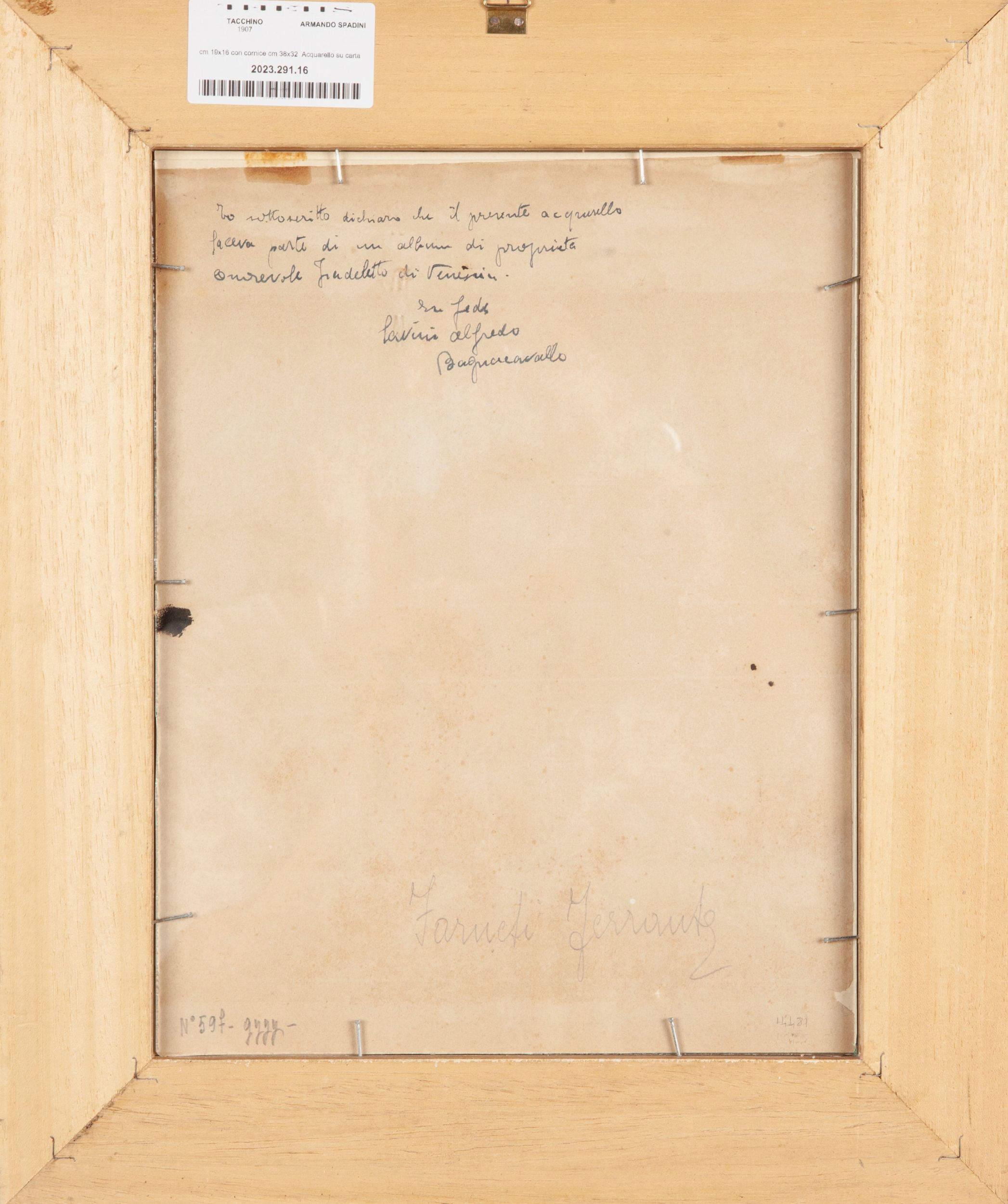 1907 Firmato e datato Spadini 1907 in basso al centro. Al verso iscrizione manoscritta di provenienza