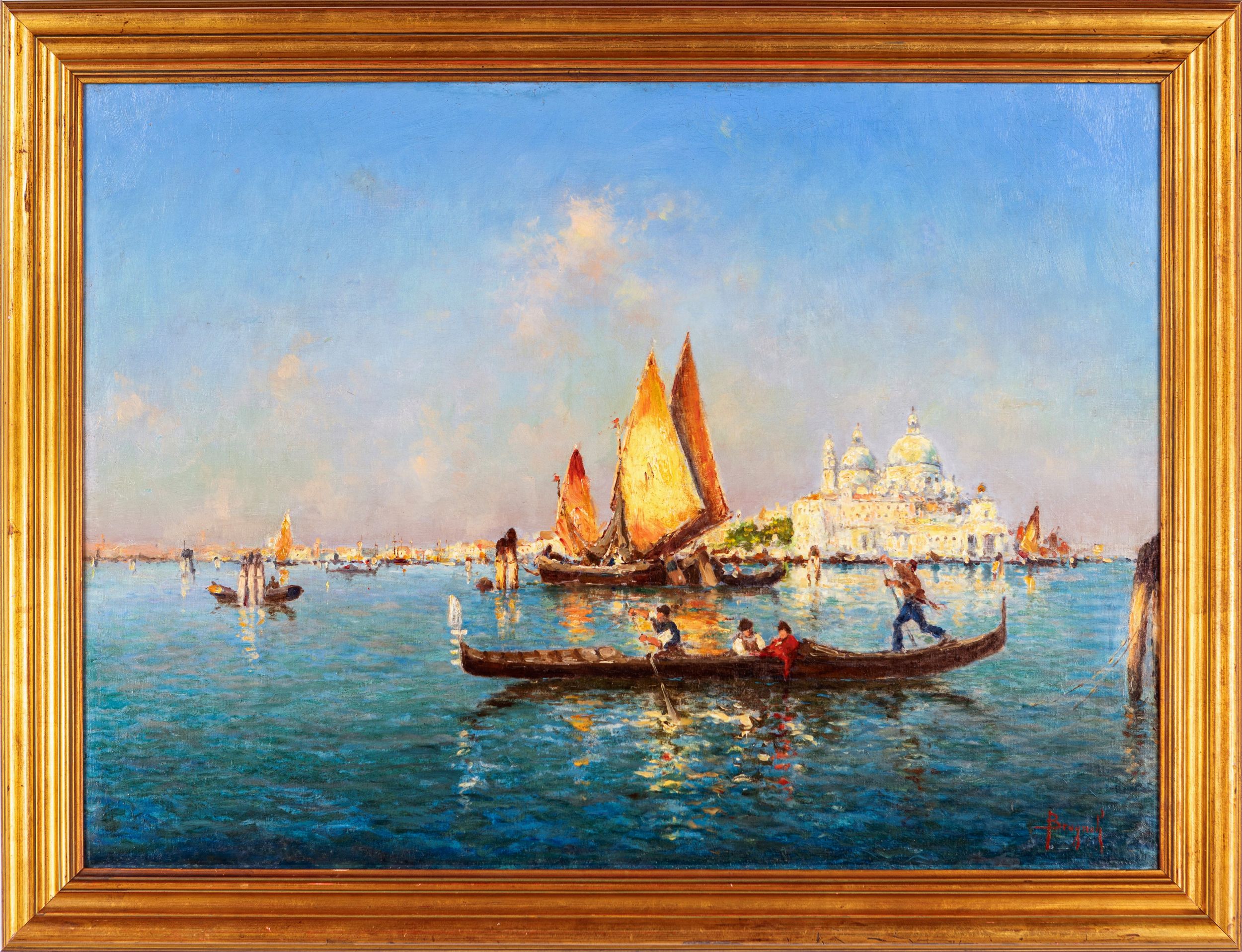 Venezia Punta della dogana e chiesa della Salute con imbarcazioni