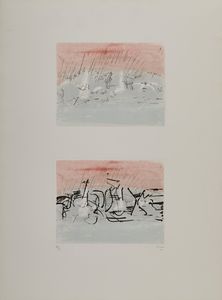 41/125. Tiratura e firma in basso a matita. Al retro cartiglio Studio Ghiglione, Genova. Dimensione lastra: 6x12.5 [..]
