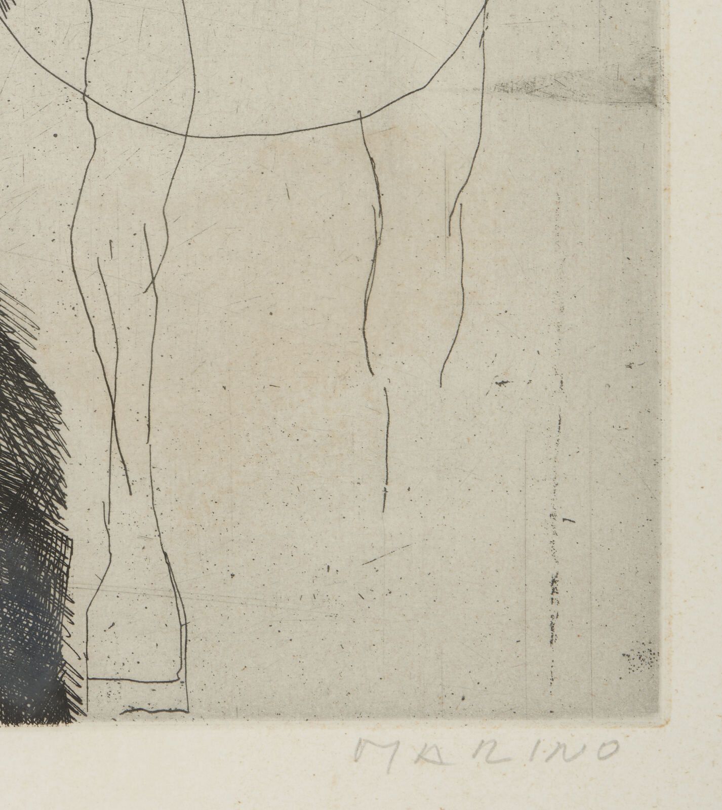 28/65. Tiratura e firma in basso a matita. Dimensione lastra: 33x24.8 cm. Editore: Fratelli Crommelynck, Parigi. Stampatore: Atelier Fratelli Crommelynck, Parigi. Edizione totale: 65 esemplari firmati e numerati da 1/65 a 65/65 + 15 esemplari numerati da I/XV H.C a XV/XV H.C. Pubblicazione: Marino Marini, Catalogo ragionato dell'Opera grafica (Incisioni e Litografie) 1919- 1980, Edizioni Graphis Arte, a cura di Giorgio e Guido Guastalla, 1990, n.A32. 1950-1970.