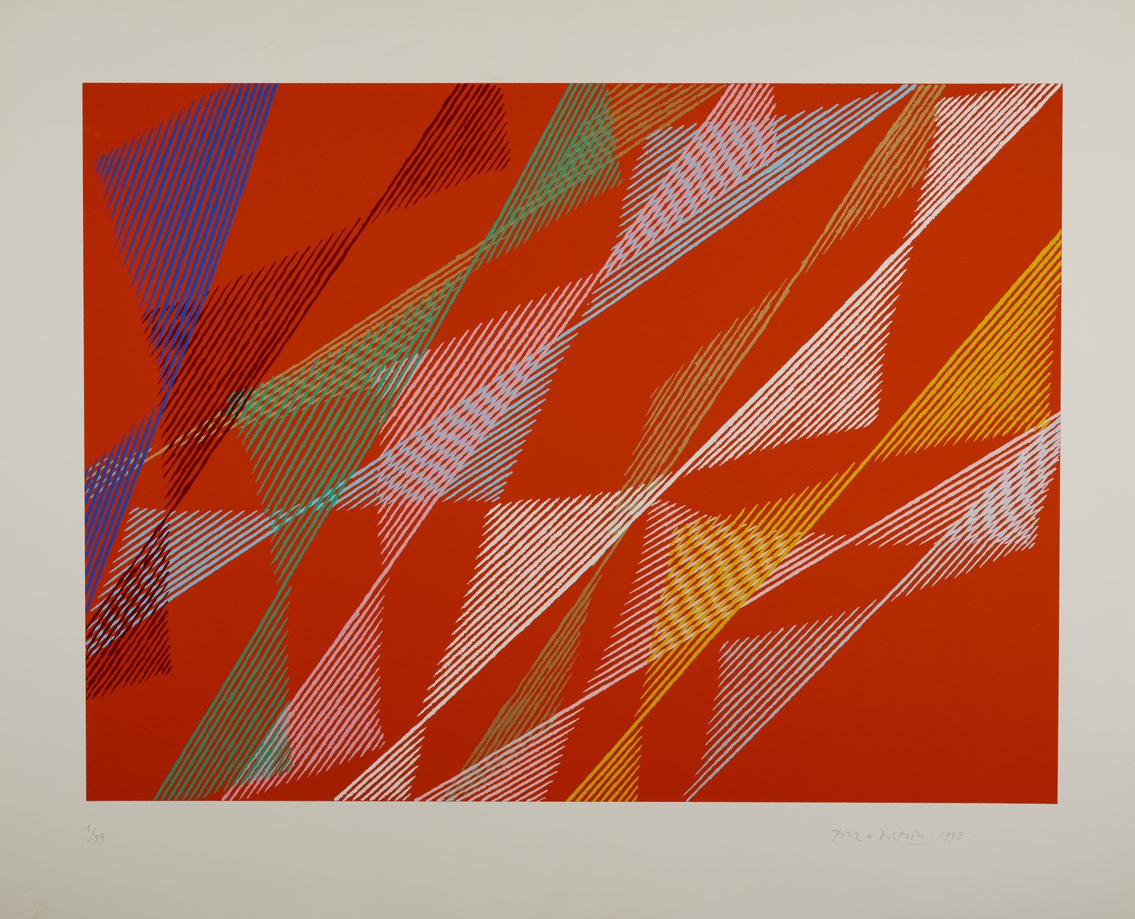 1/99. Tiratura, firma e anno in basso a matita. Edizione totale: 99+XXV esemplari. Timbro a secco Atelier Arcay, Parigi. Stampate per George Fall editore.