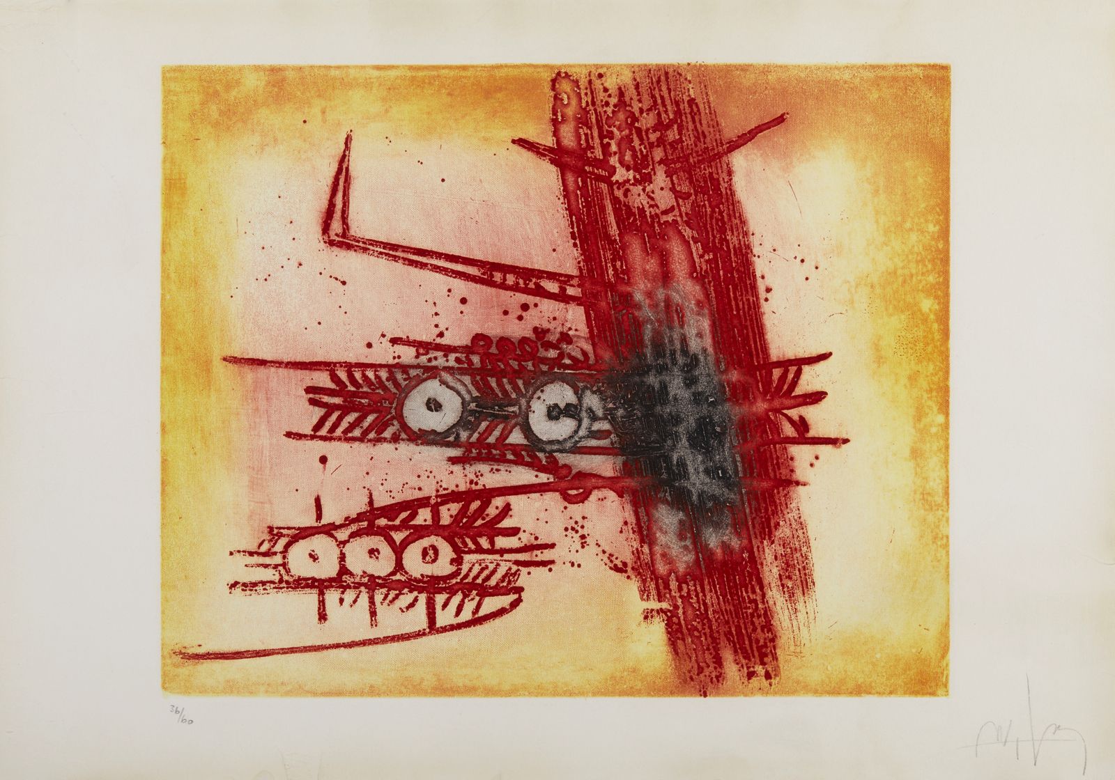 36/60. Tiratura e firma in basso a matita. Dimensione lastra: 38.5x47.5 cm. Filigrana CM Fabriano. Pubblicazioni: D. Tonneau-Ryckelynck, E. Lam, D. Dolega-Ritter, Wifredo Lam: catalogue raisonné: prints, Hervé Chopin, Parigi, 2016, n. 6503. Difetti.