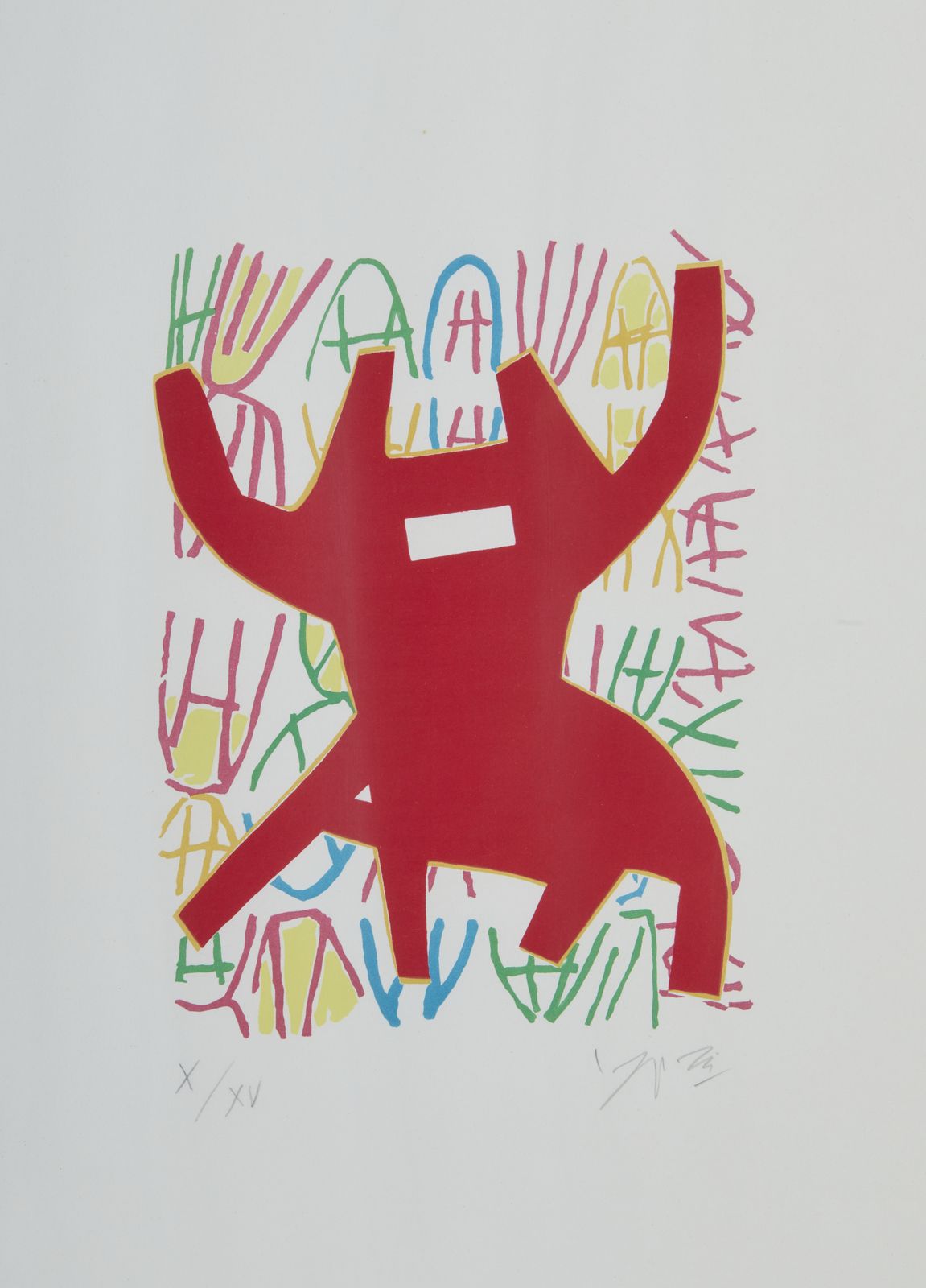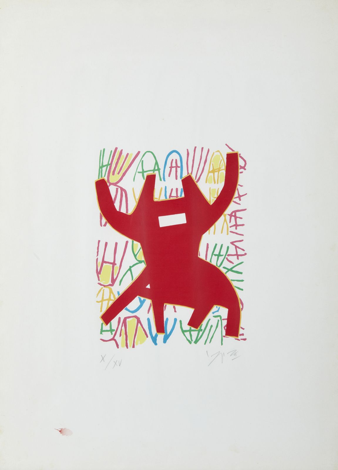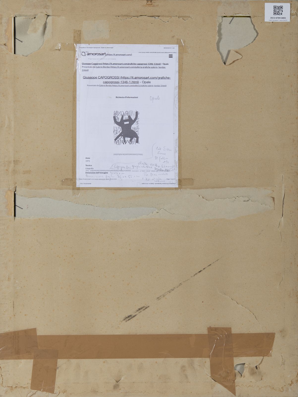 X/XV. Tiratura e firma in basso a matita. Timbro a secco Erker Presse, St. Gallen, in basso a sinistra. Stampatore: Erker Presse, St. Gallen. Edizione totale: 80 esemplari numerati da 1 a 80 + XV esemplari numerati da I a XV + P.A. Pubblicazioni: Capogrossi Das graphische Werk, Ulrike von Hase-Schmundt, n° 110.