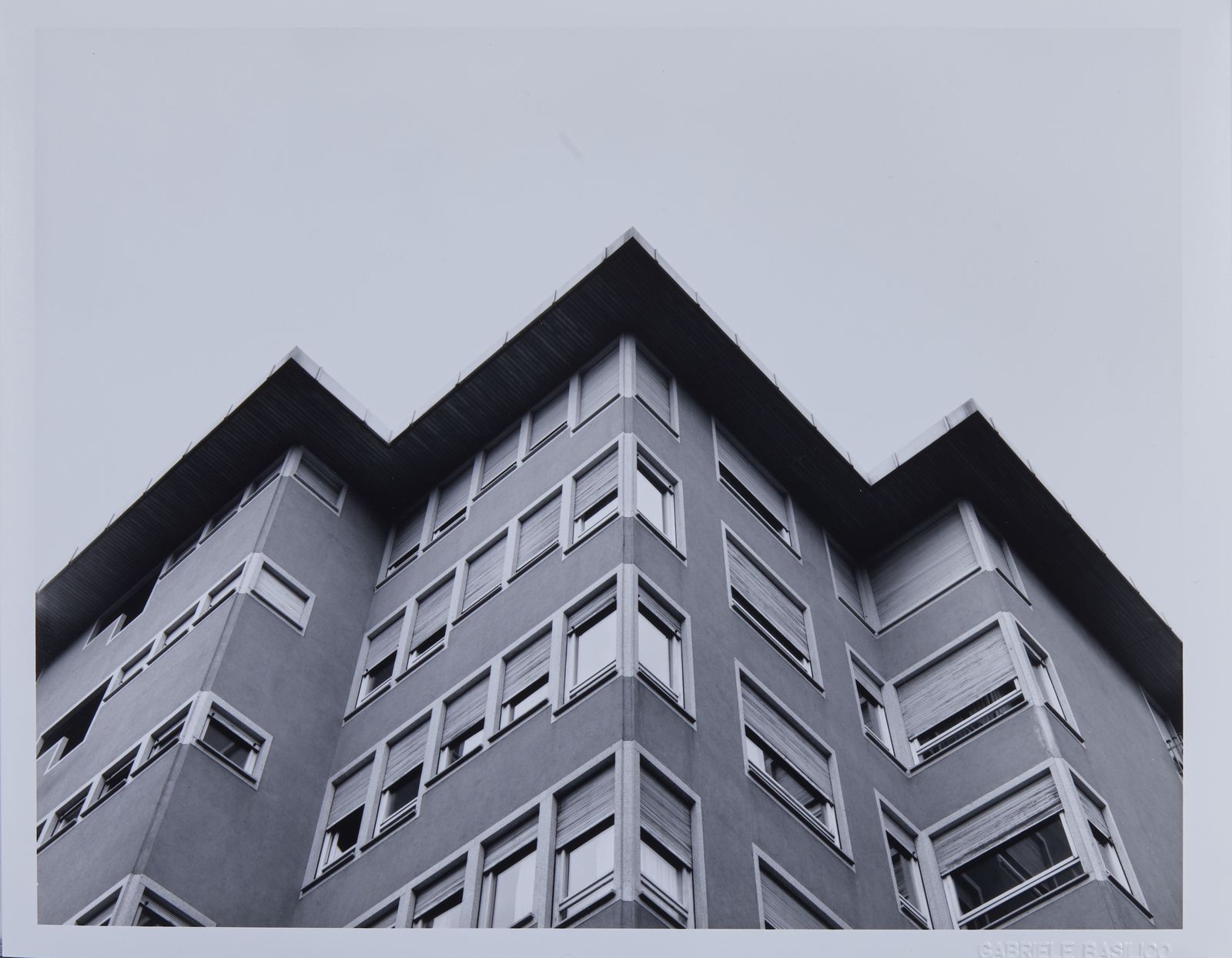 Fotografia su carta politeama. Marchio Gabriele Basilico in basso a destra. Il soggetto rappresenta Casa Bassetti: condominio realizzato per l'alta borghesia tra via Marina e via Senato (Milano) tra il 1960-1970.