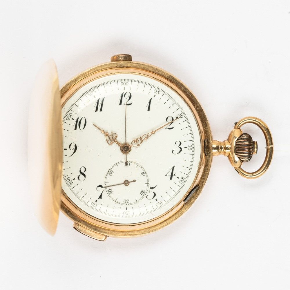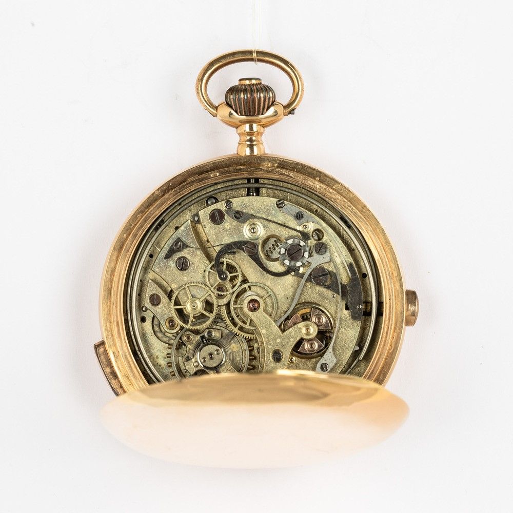 Orologio da tasca con ripetizione ore-quarti e chrono, cassa in oro 18 kt a tre [..]