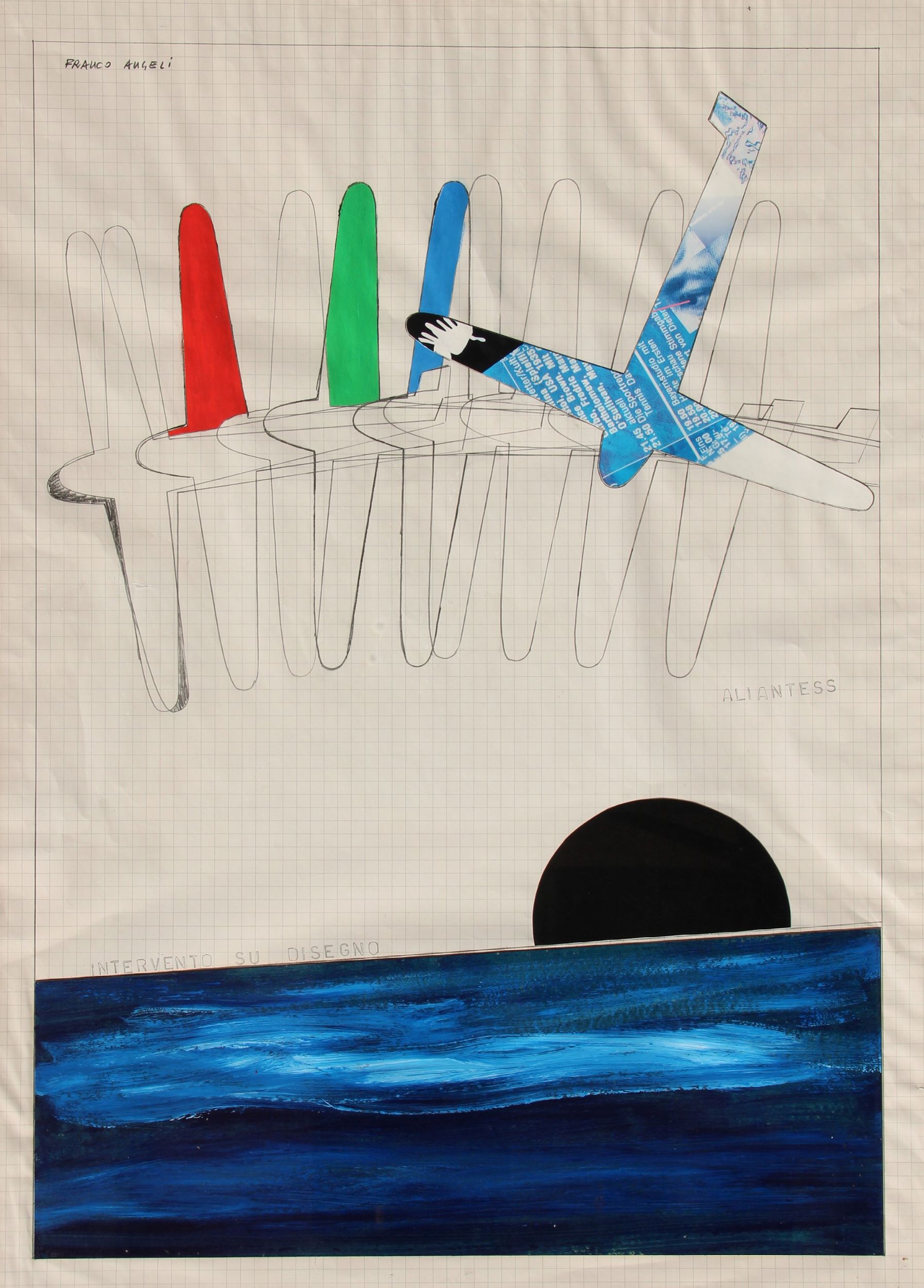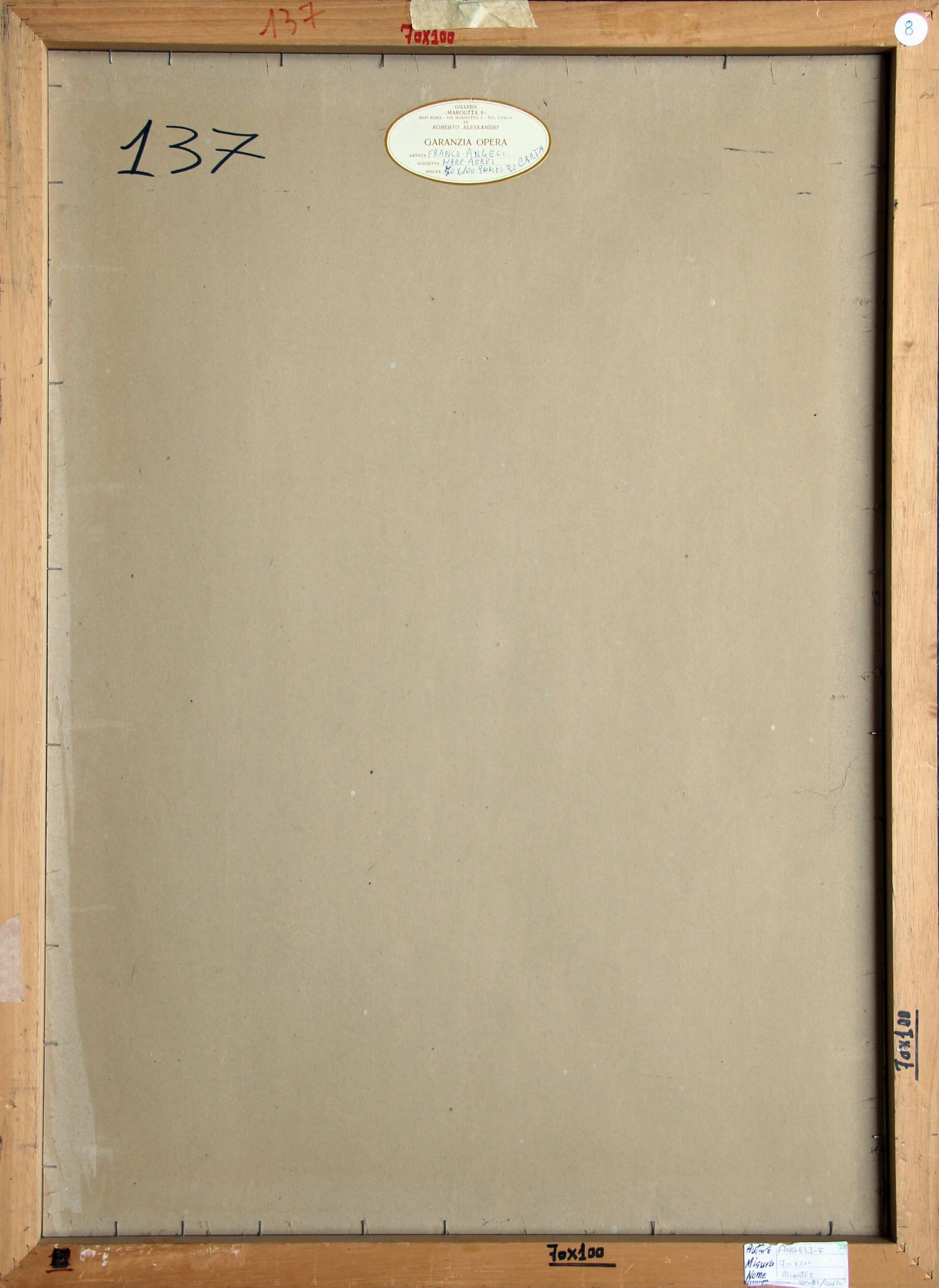 Firma Franco Angeli (in alto a sinistra);titolo Aliantess (al centro a destra)Etichetta della Galleria Margutta 9, Roma (al retro)