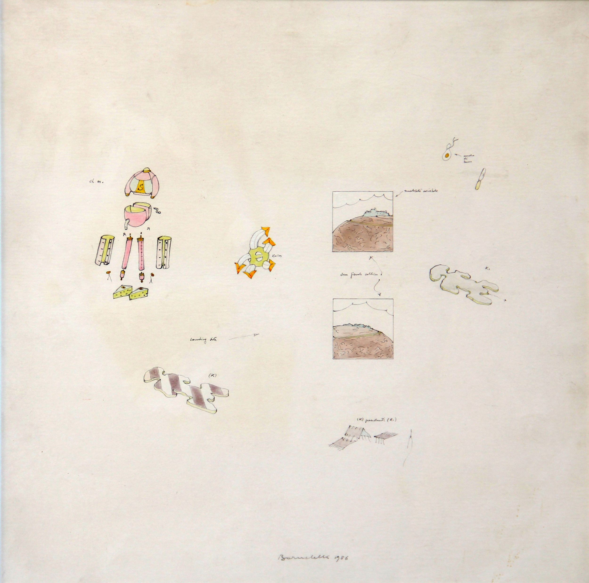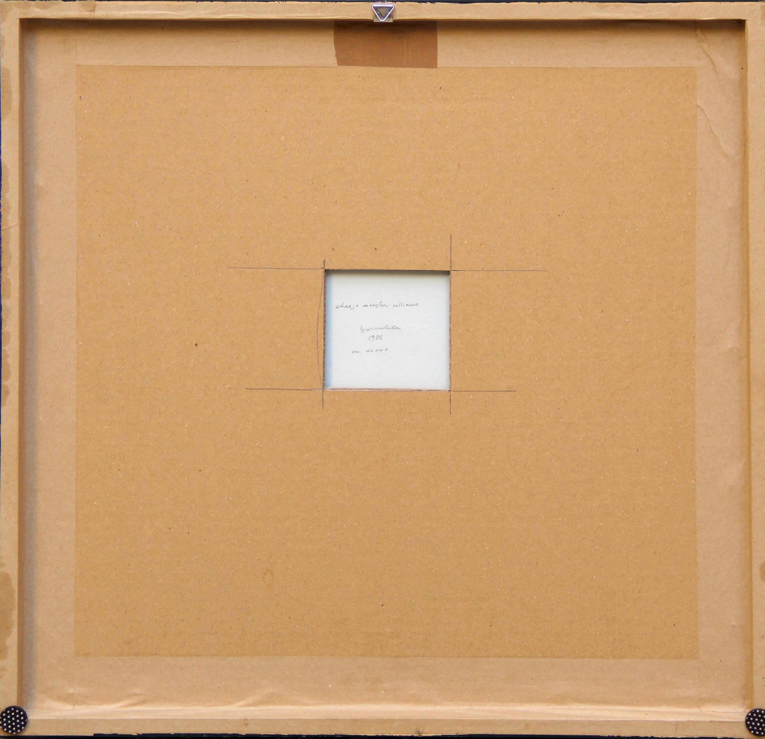 Titolo, firma, data, misura Cheese monster collinare, Baruchello, 1986, cm 40x40 (al retro)