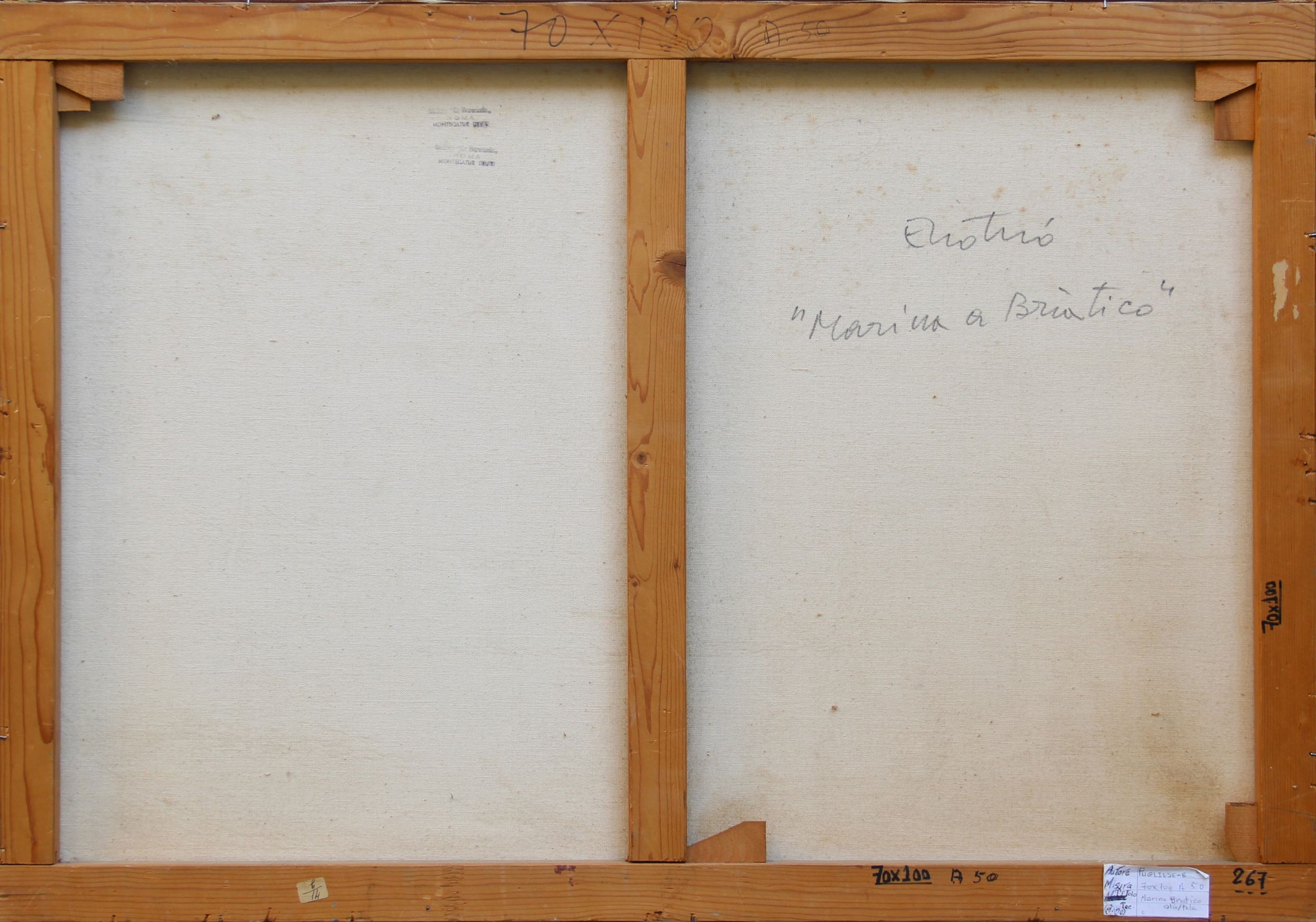 Firma Enotrio (in basso a sinistra)Firma, titolo Enotrio, Marina a Briatico;timbro di Galleria La Barcaccia, Roma e Montecatini Terme (al retro)