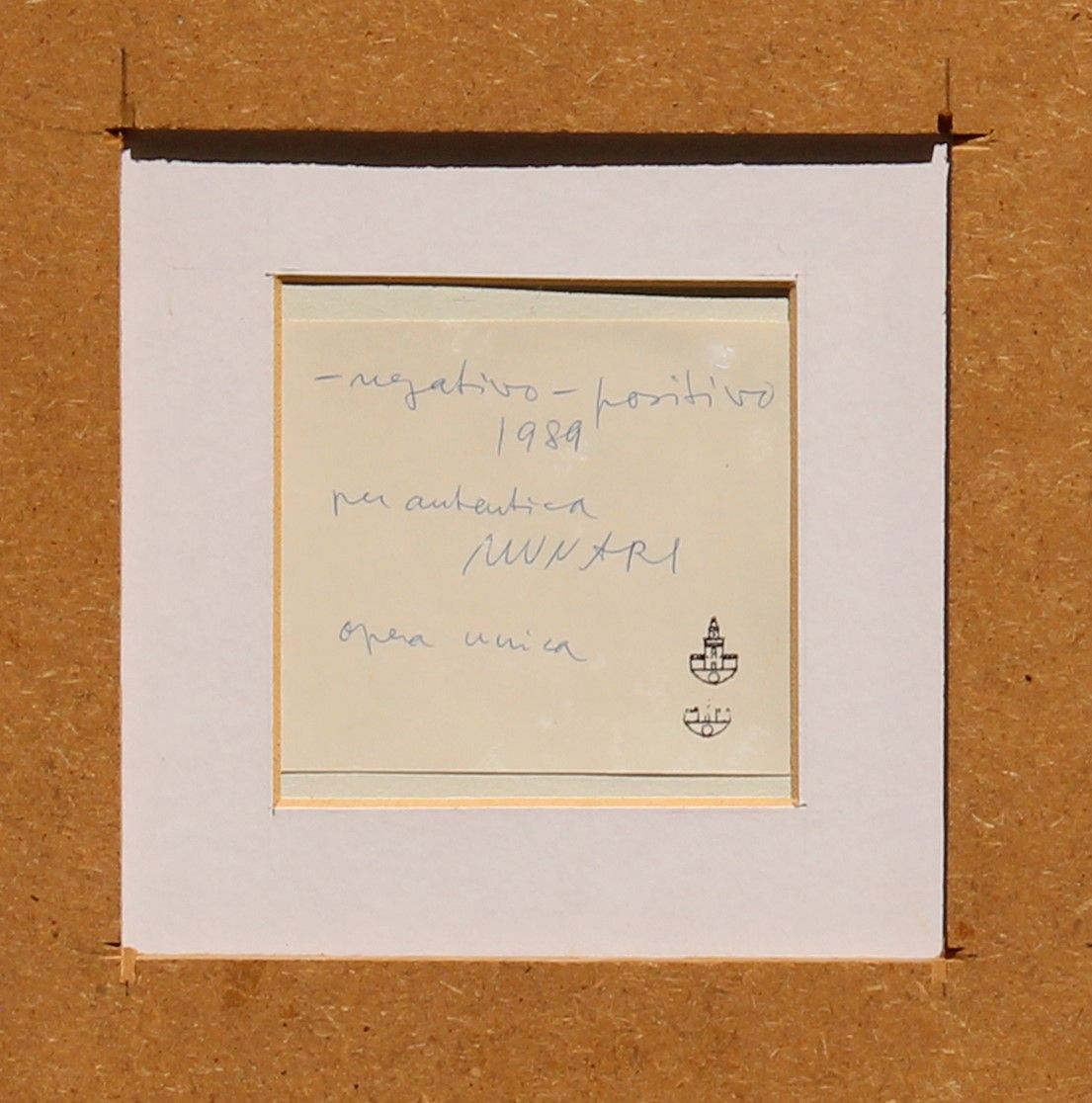 1989 Titolo, data, dichiarazione di autenticità Negativo-positivo, 1989, per autentica Munari opera unica (al retro)