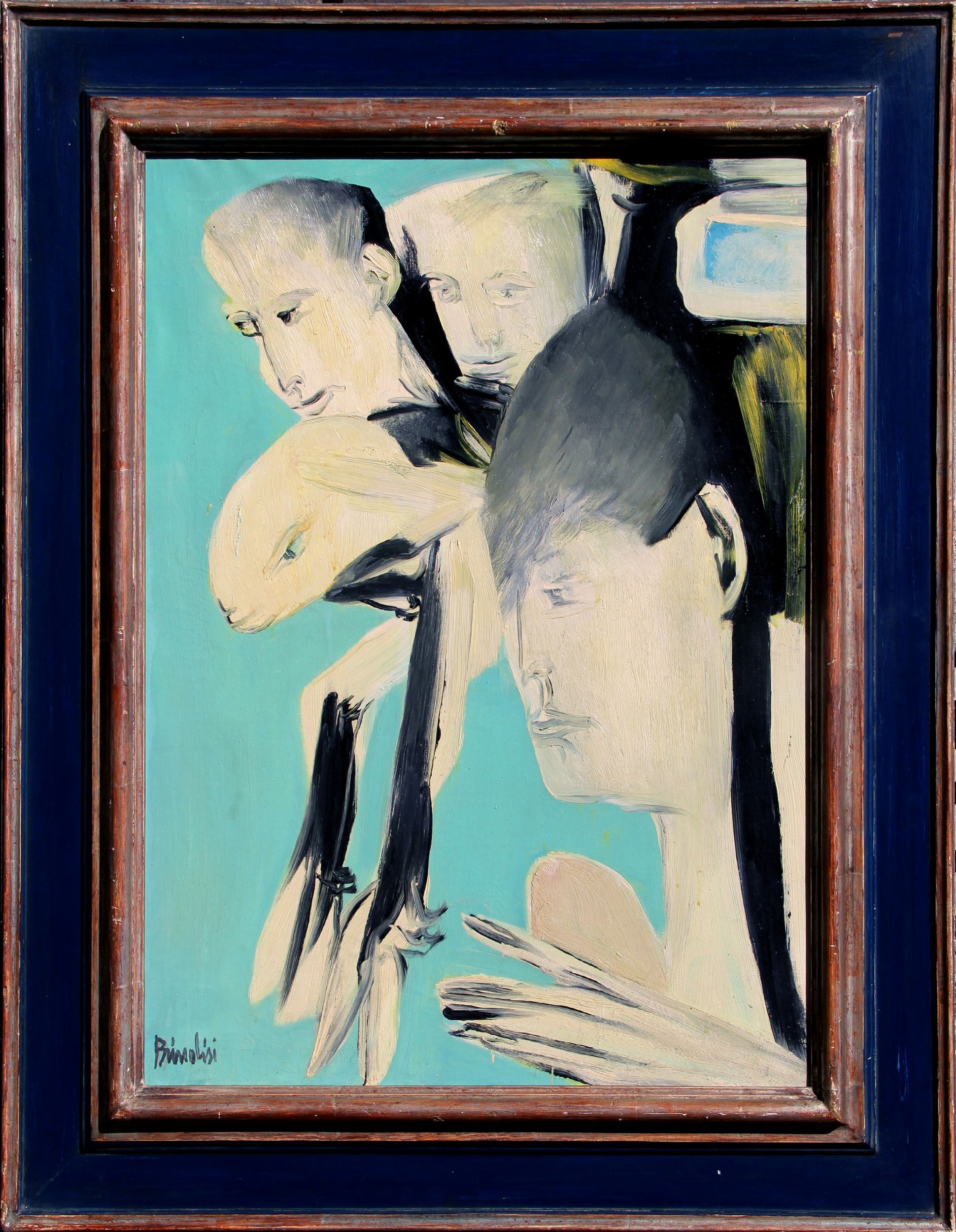 Firma Brindisi (in basso a sinistra)Dichiarazione di autenticità, firma Questo quadro è autentico, Brindisi;timbro e etichetta di Galleria L'Approdo, Torino (al retro)
