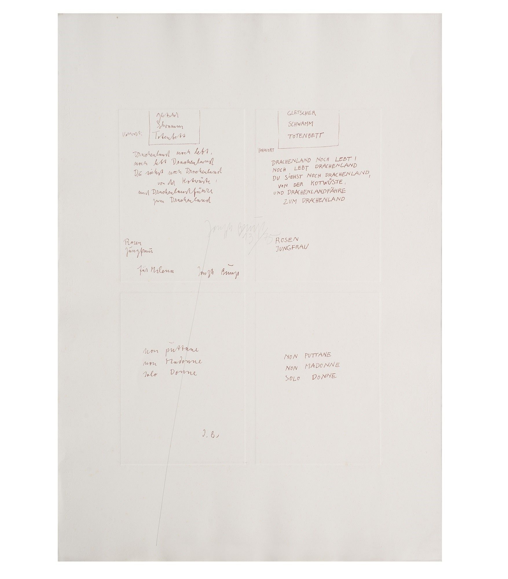 Numerata 13/75 al centroEdizioni Factotum Art, VeronaBibliografia: Joseph Beuys - Die Multiples, Edizioni Schellmann, pagina 252, numero 309