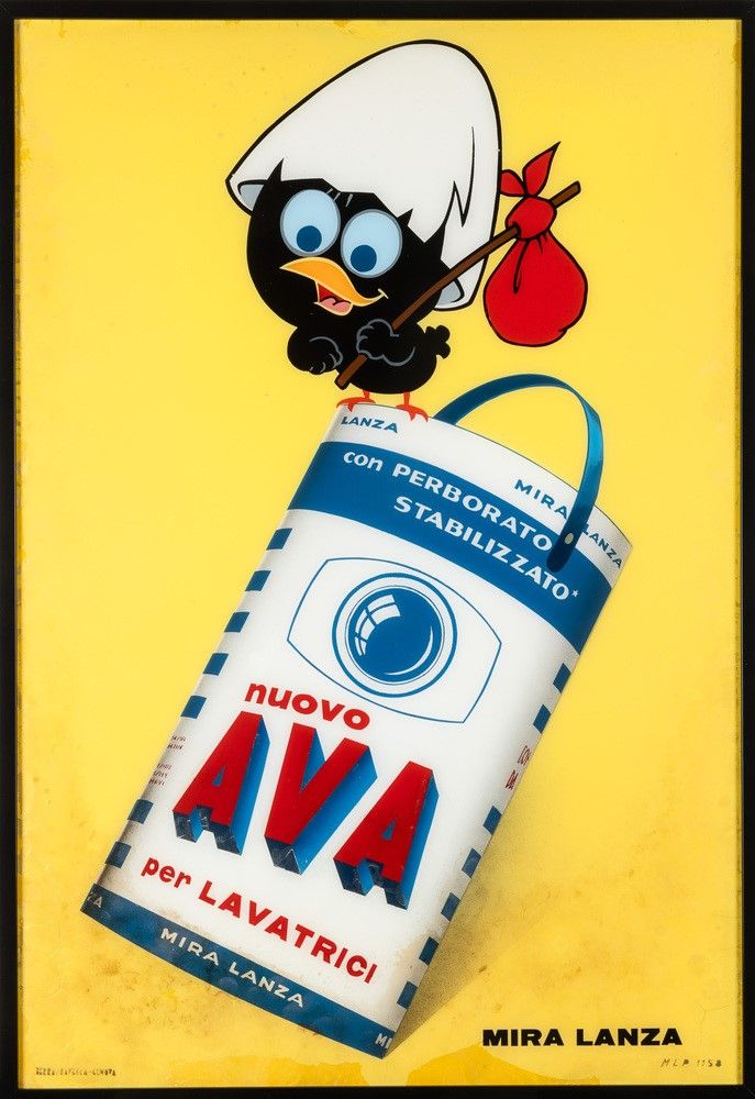 Vetrofania pubblicitaria Calimero - detersivo Ava