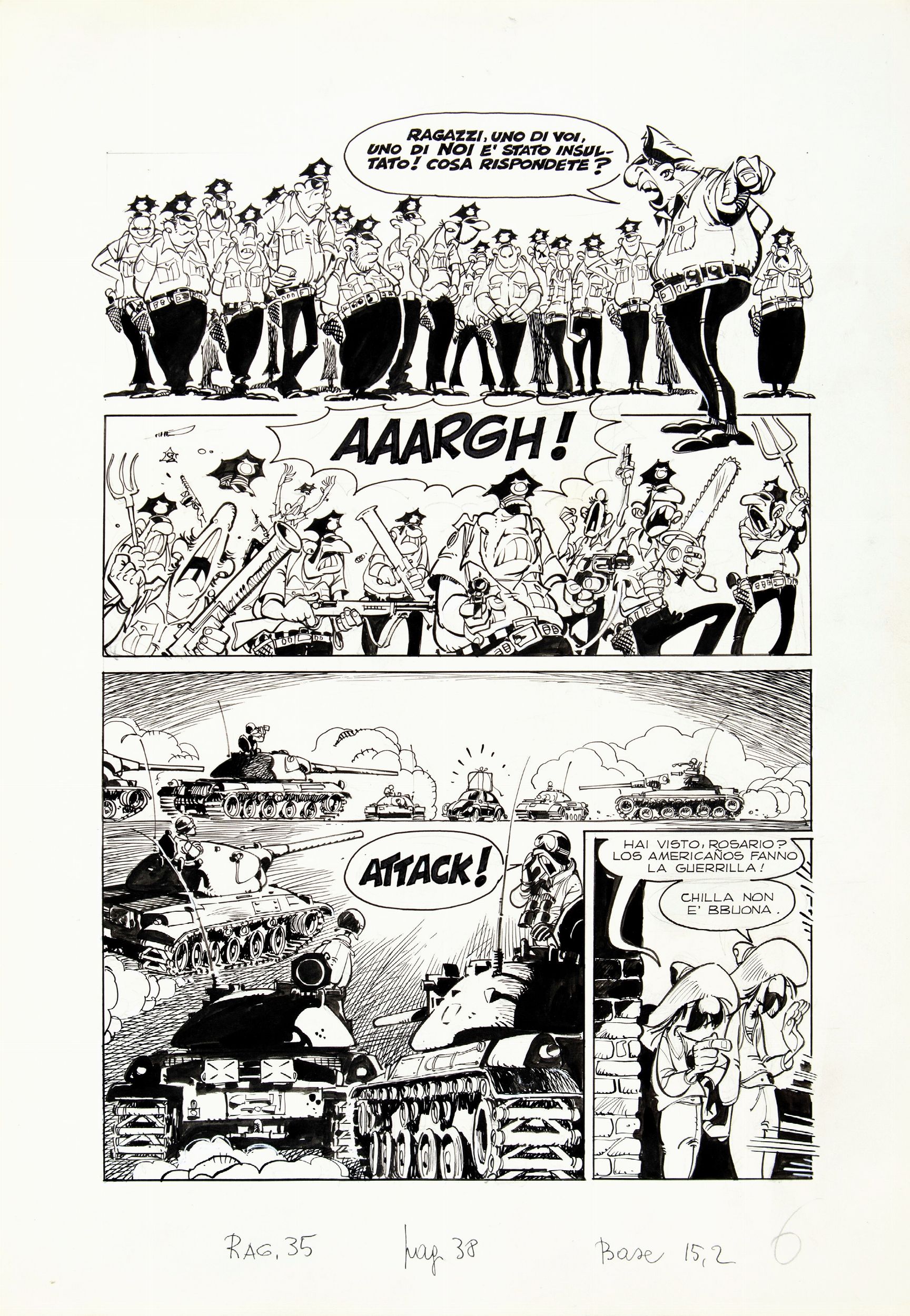 1976 Tavola originale realizzata da Cavazzano per la pag. 6 di è scomparso il Maggiolino, episodio della mitica serie Altai & Jonson pubblicato sul CdR n. 35 nel 1976.