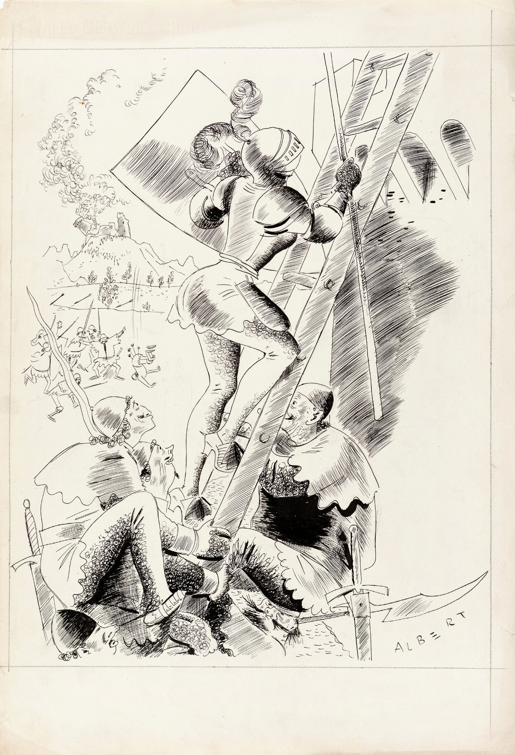anni '30 Illustrazione originale realizzata da Albertarelli durante gli anni ’30 per il giornale satirico Bertoldo. Due piccoli strappi al margine destro. Firmata.