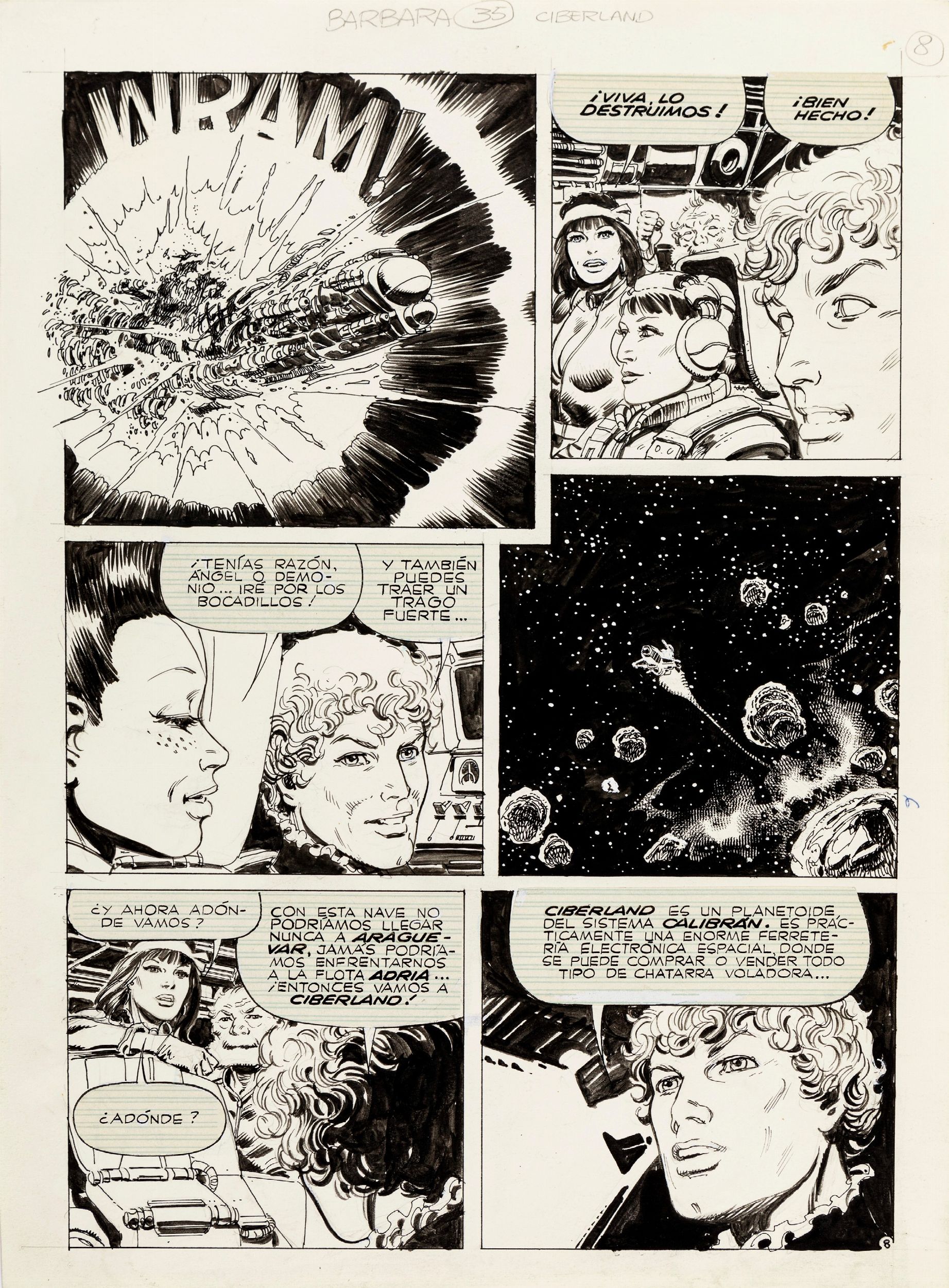 matita e china su cartoncino, 28,5 x 37,5 cm 1983 Tavola originale realizzata da Zanotto per Ciberland, pag. 8 di questo episodio di Barbara pubblicato per la prima volta sulle pagine della rivista argentina Skorpio n. 92 dalle Ediciones Récord nel 1983.