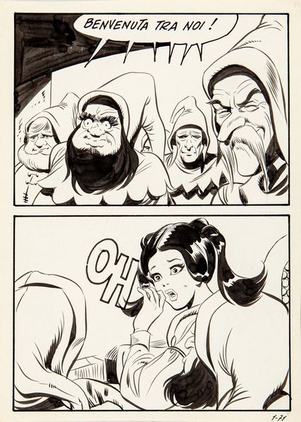 1972 Tavola originale realizzata da Frollo per I Sette Nani viziosi, lo storico primo numero della sua Biancaneve, edita a pag. 71 dalla Edifumetto nel 1972.