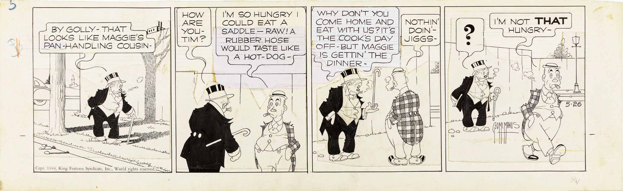 1944 Striscia giornaliera del 26/05/1944 per Bringing Up Father. Firmata e datata.