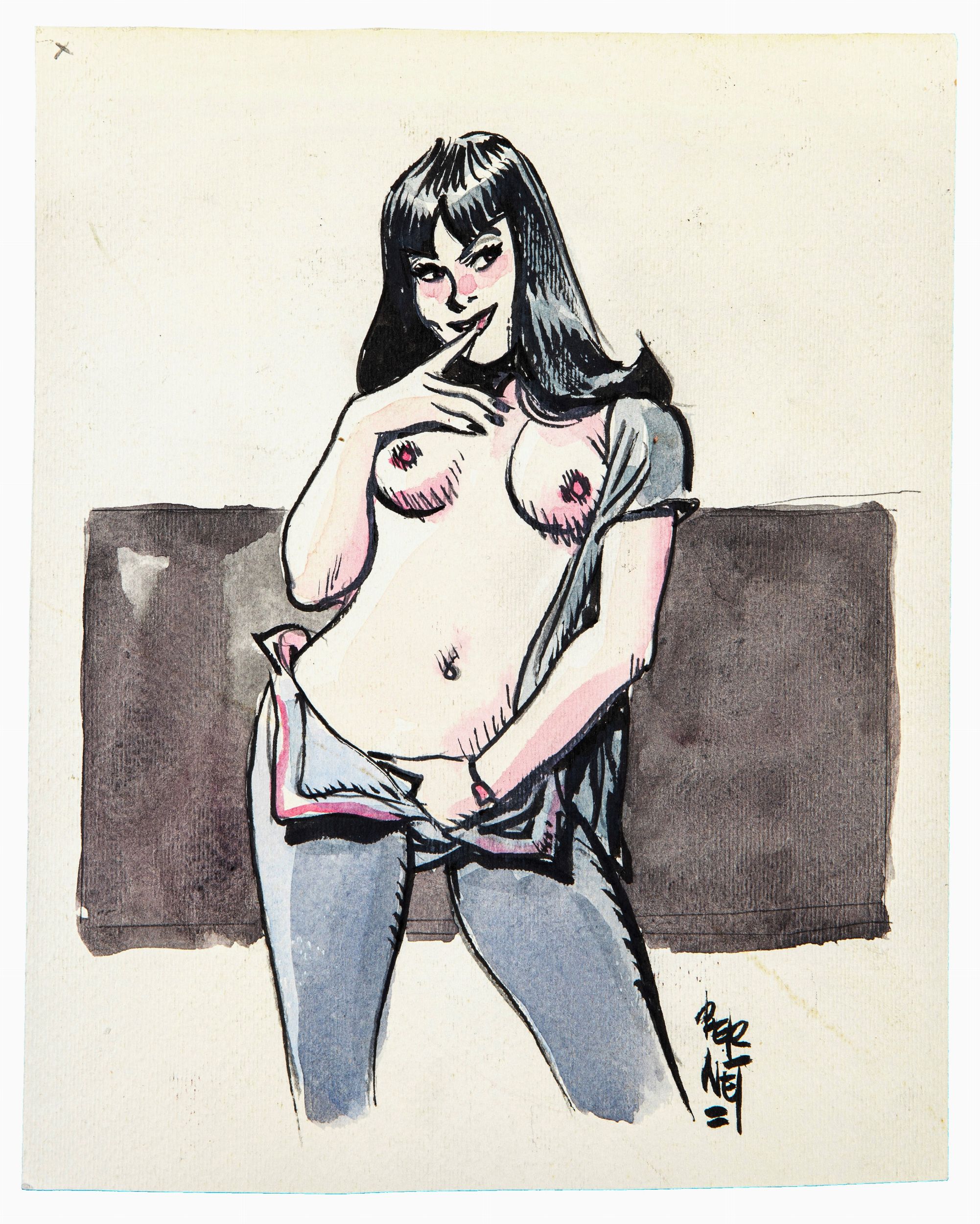 anni 2000 Illustrazione originale realizzata da Bernet per la sua sexy eroina Chiara. Firmata.