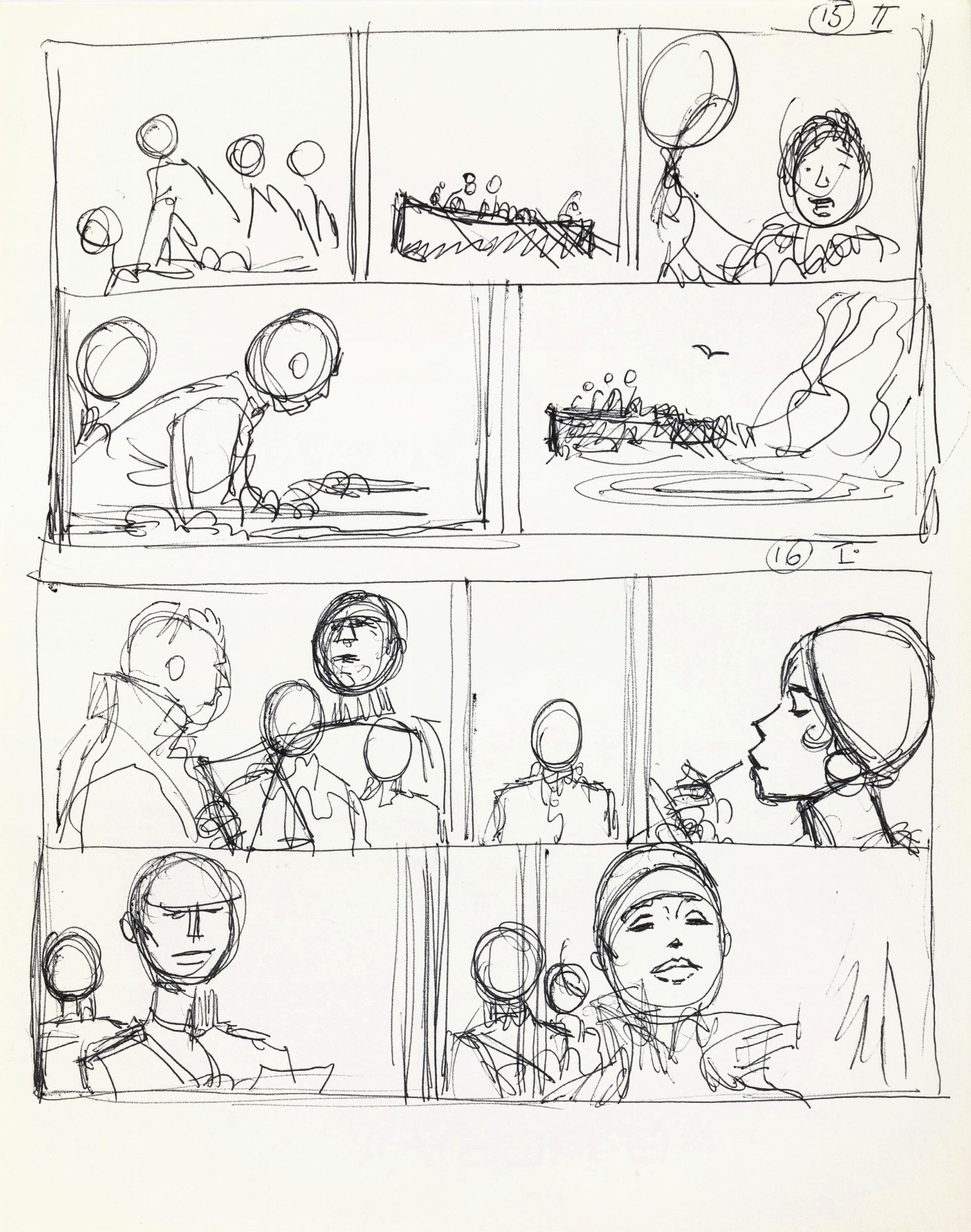 1972 Lotto composto da 3 tavole preliminari realizzate da Pratt per la sedicesima avventura di Corto Maltese intitolata Sogno di un mattino di mezzo inverno, pubblicata per la prima volta in Francia su Pif Gadget nel 1972. Nel 1917 Corto è a Stonehenge, in Inghilterra. Mentre dorme si svolge l'incontro tra quattro creature fantastiche della mitologia anglosassone: Puck, Oberon, Morgana e Merlino e il motivo è il bisogno di trovare qualcuno che riesca a contrastare l'imminente sbarco dei tedeschi che minaccia di spazzare via il magico mondo di questi esseri; la scelta ricade su Corto Maltese. Per la prima volta abbiamo la possibilità di sbirciare nel processo creativo del grande Pratt, in queste tavole abbozzate, ma già pienamente evocative, possiamo ammirare Corto immerso nella nebbia di Stonehenge mentre parla con Puck sotto forma di corvo, vediamo poi la bella Rowena e il soldato tedesco Vortigern. Provenienza: Heritage Auction - Lot #91200 - Jun 8, 2019.