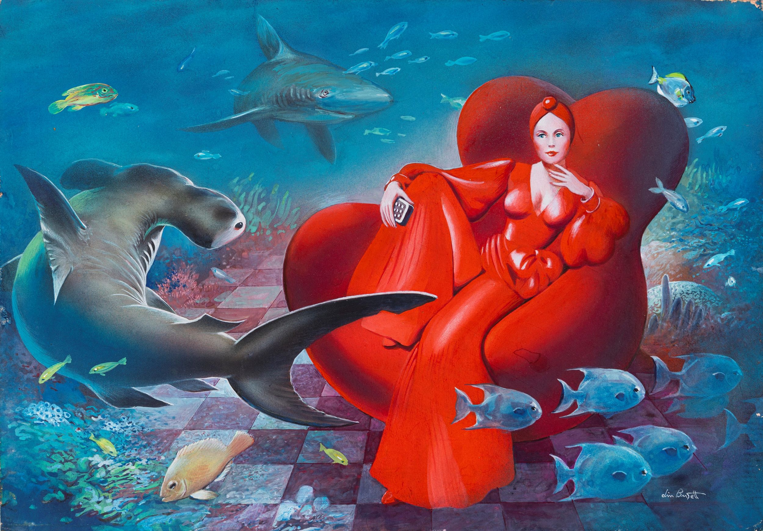 tempera su cartone, 36,5 x 25,5 cm 1980 Illustrazione originale realizzata da Busett per la Grande Enciclopedia della Fantascienza, edita dall'Editoriale Del Drago nel 1980-81. Firmata.