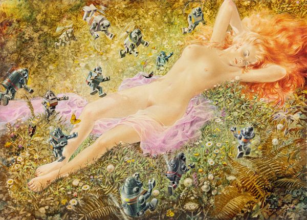 Angelo Bioletto : Fanciulla dormiente e robot  - Asta Fumetti: Tavole e Illustrazioni Originali - Associazione Nazionale - Case d'Asta italiane
