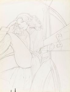 matita su cartoncino, 50 x 65,5 cm anni '90 Lievi pieghe ai margini e due piccoli strappi al margine destro. [..]