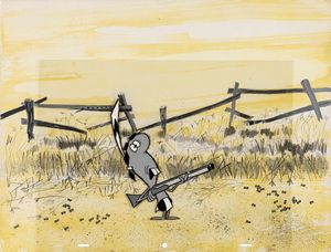 matita e china su cartoncino, 46 x 13,5 cm anni '70 Striscia giornaliera anni '70 per Beetle Bailey. Piega verticale [..]
