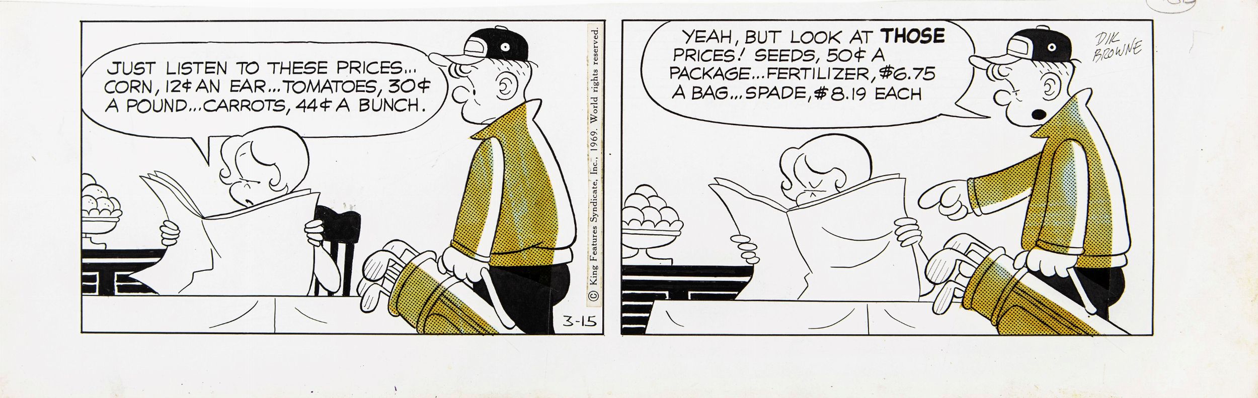 1969 Striscia giornaliera del 15/03/1969 per Hi and Lois. Firmata e datata.