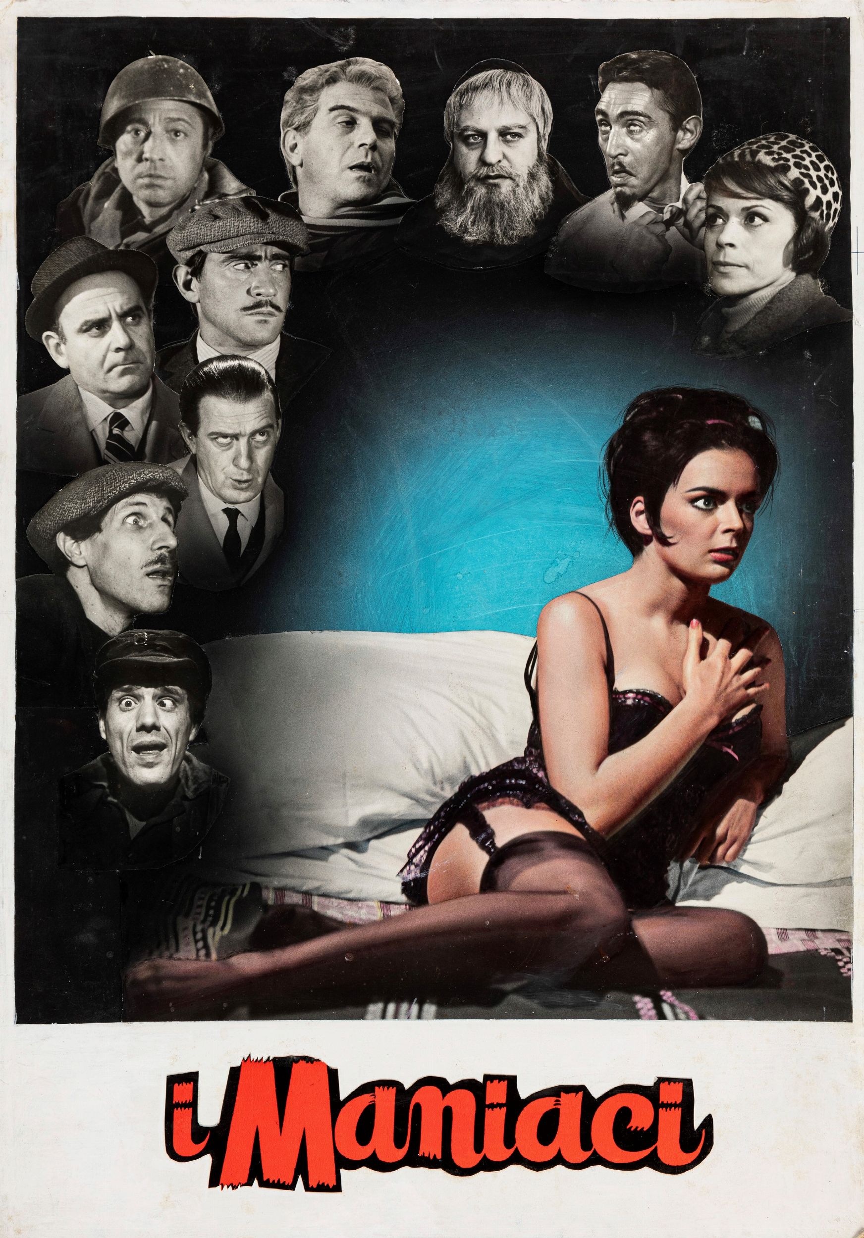 1964 Bozzetto originale per la locandina ufficiale del film I maniaci, diretto da Lucio Fulci con Walter Chiari, Barbara Steele e Raimondo Vianello nel 1964.