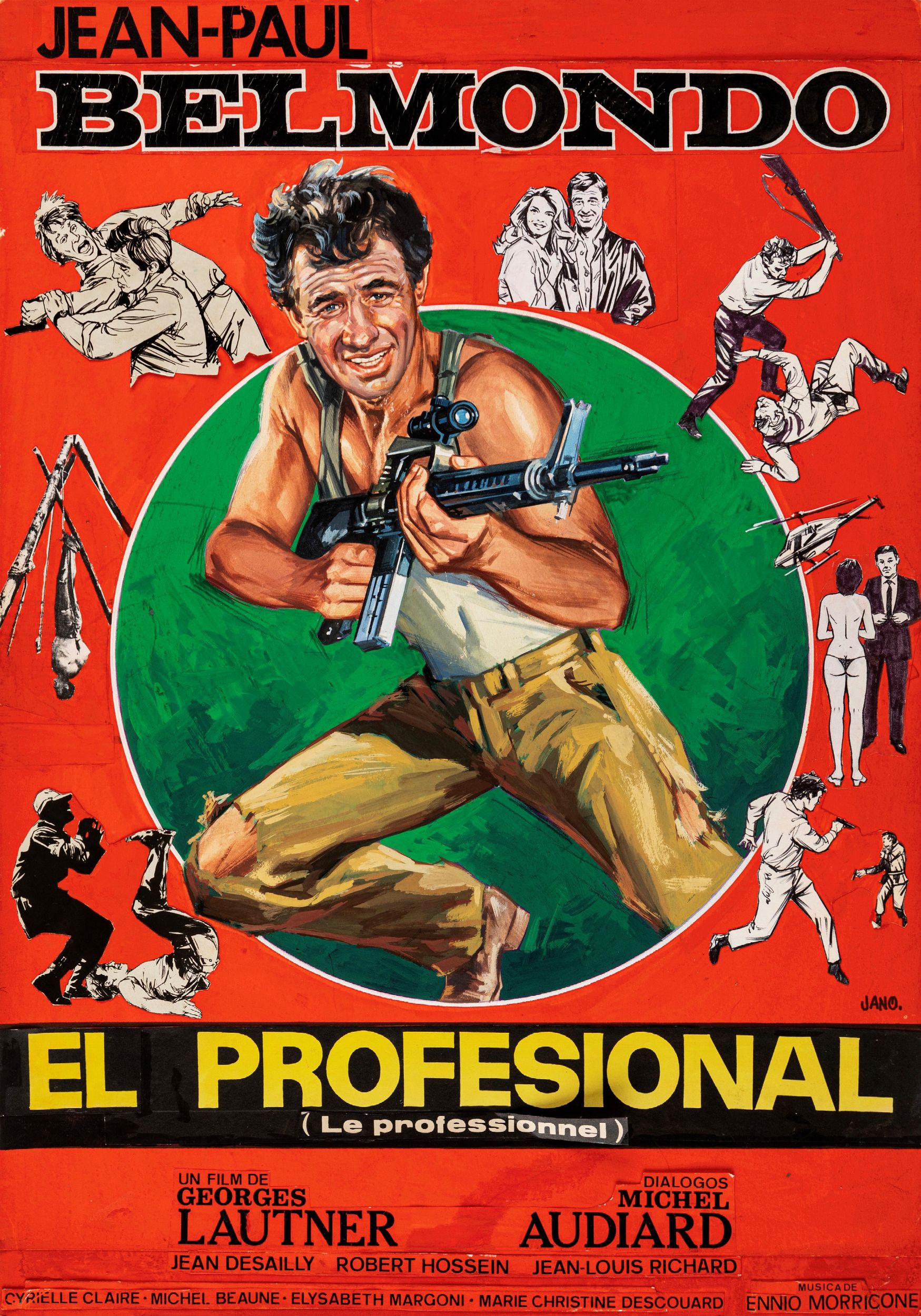 1981 Bozzetto originale realizzato da Jano per la locandina ufficiale del film Joss il professionista, diretto da Georges Lautner con Jean-Paul Belmondo, Robert Hossein e Jean Desailly nel 1981. Firmato.
