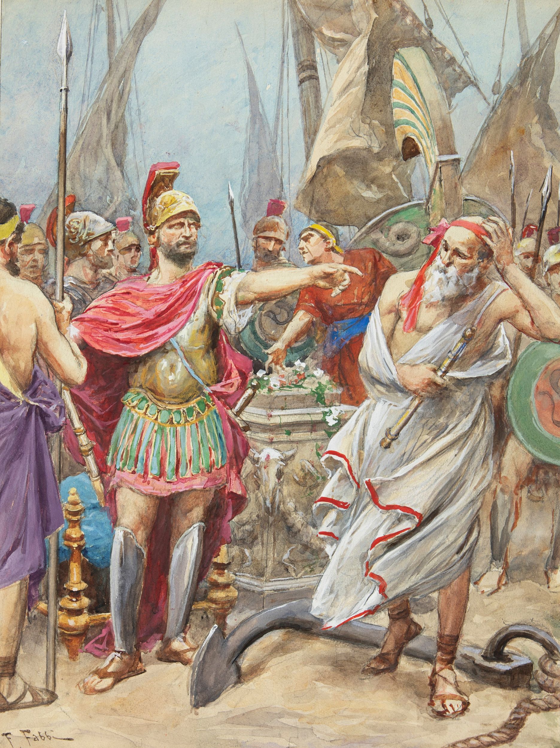 matita, china, acquerello e tempera su cartoncino, 30 x 40 cm 1930 Illustrazione originale realizzata da Fabbi per L´Iliade, pubblicata a pagina intera nel libro 1 da Nerbini nel 1930. Pittore di fama internazionale Fabbi è considerato uno dei massimi esponenti della corrente orientalista. Firmata.