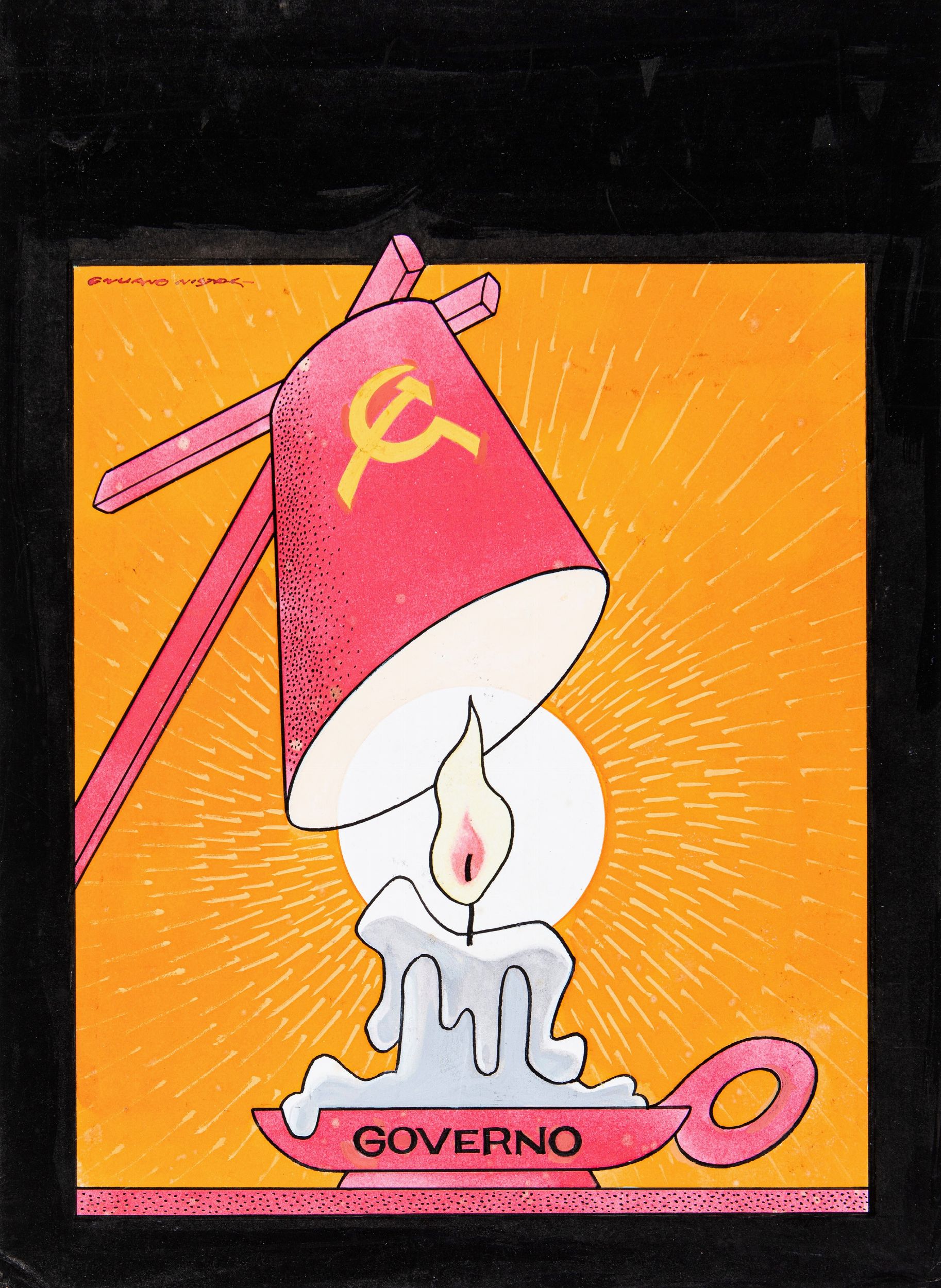 1975 Originale di copertina realizzato da Nistri per il periodico politico e culturale Il Borghese n. 40 del 1975. Piega all'angolo inferiore sinistro. Firmato.