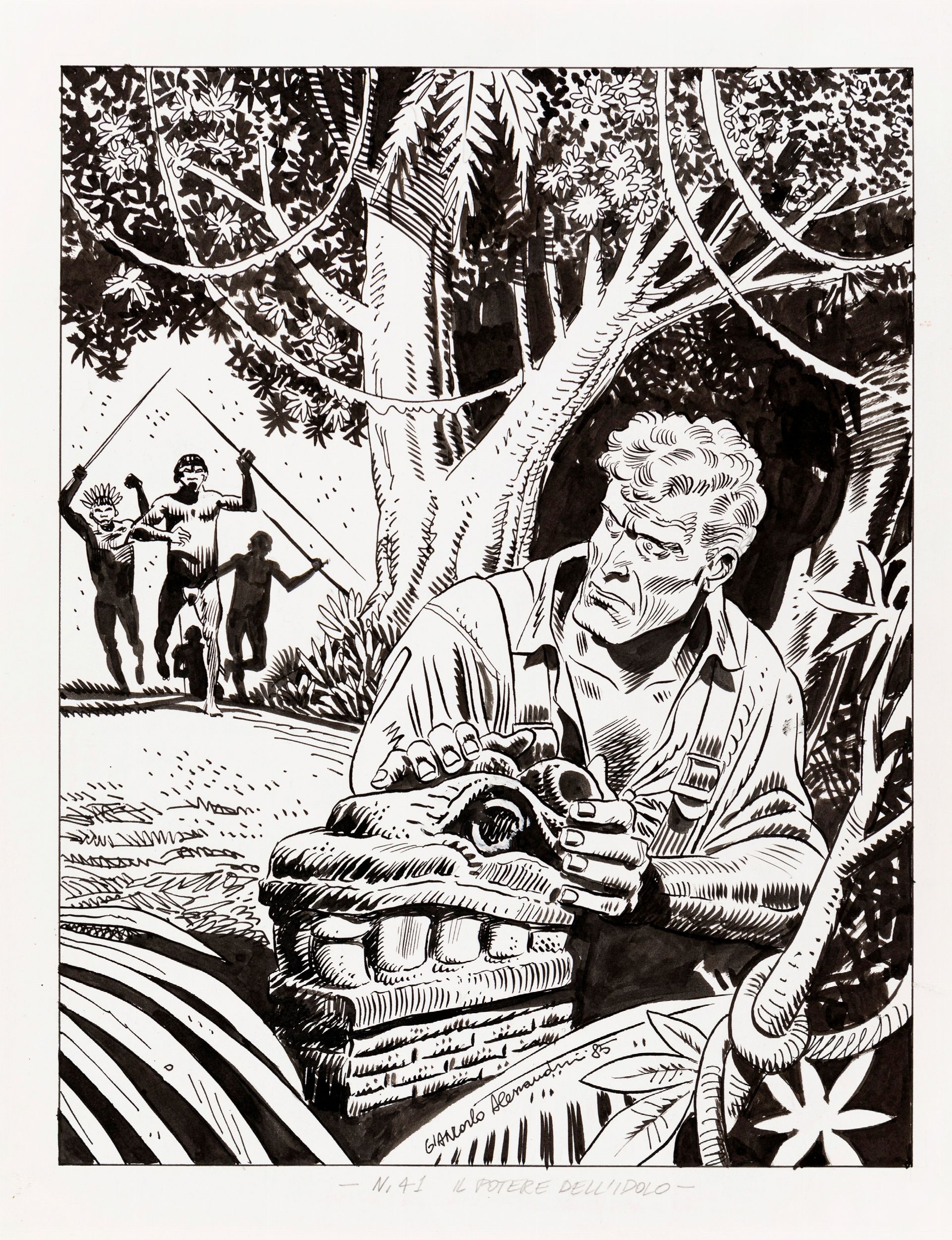 1985 Originale di copertina realizzato da Alessandrini per “Il potere dell'idolo, edito su Martin Mystère n. 41 dalla Bonelli nel 1985. Firmato e datato.