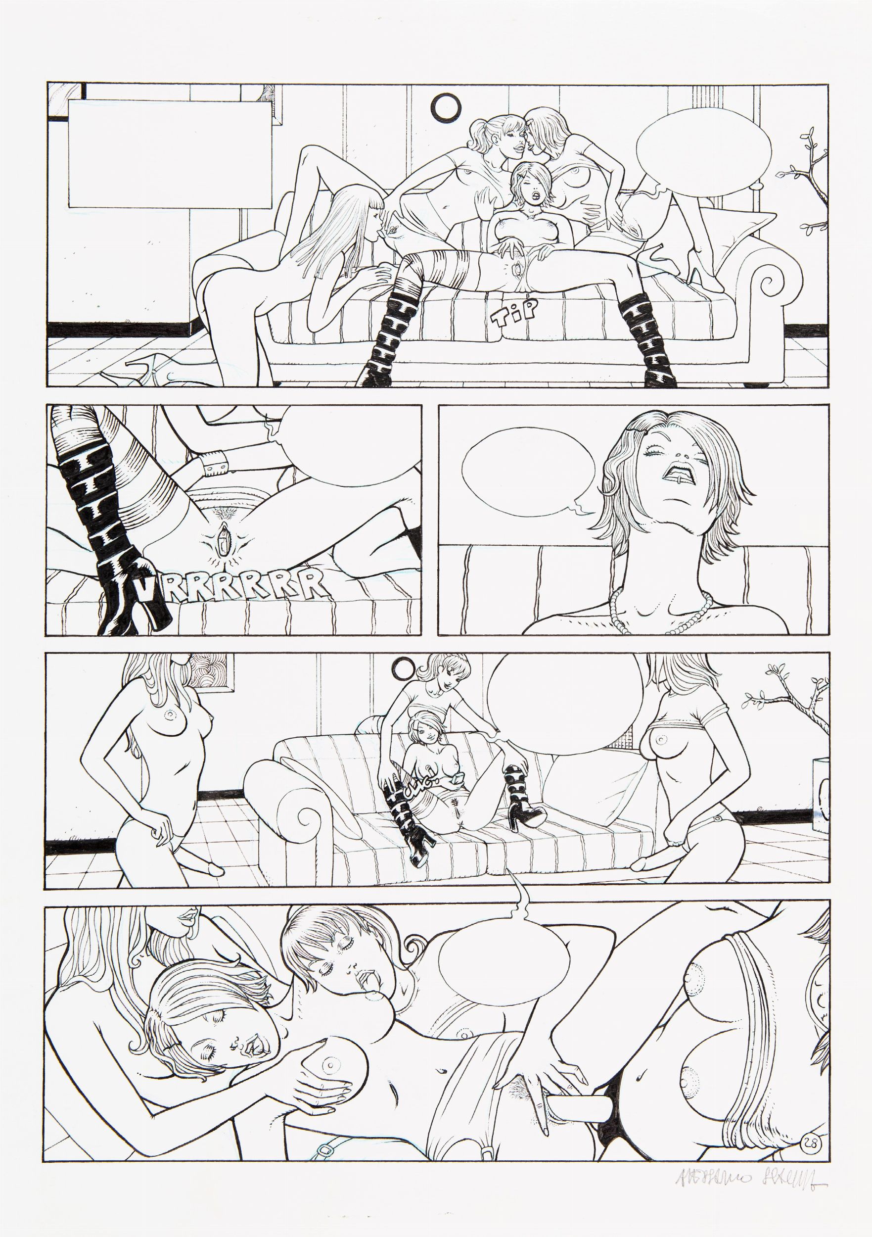 2011 Tavola originale realizzata da Scacchia per Mona agent X, edita a pag. 28 dall'editore francese Blanche nel 2011. Firmata.