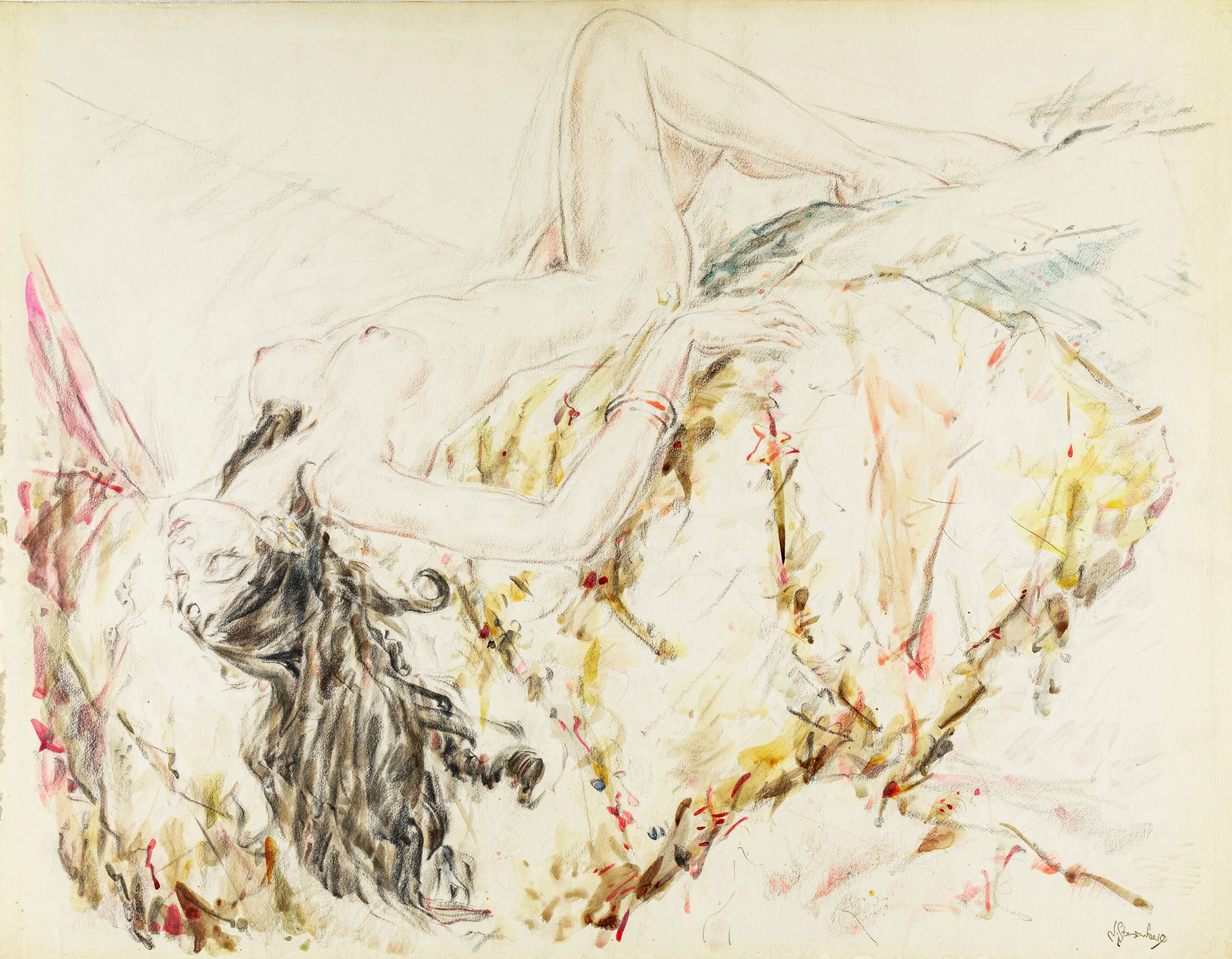 matita, carboncino e acquerello su cartoncino, 65 x 50 cm anni '30 Illustrazione originale realizzata durante gli anni '30 dall'ungherese Sternberg. Artista di origini ebree, Sternberg mostra l'influenza dell'espressionismo, ma come molti degli artisti dell'École de Paris il suo stile č difficile da inquadrare, i suoi ritratti sono potenti e intimi. Firmata.