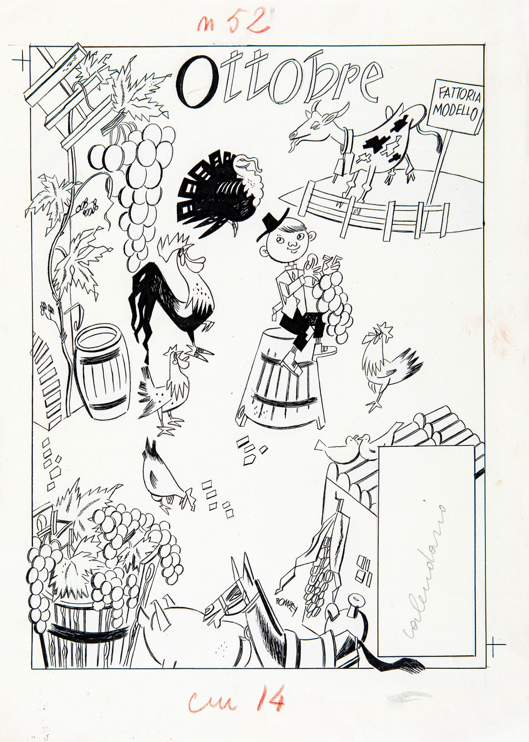 anni '40 Illustrazione originale realizzata da Pompei per un calendario nei primi anni '40. Firmata.
