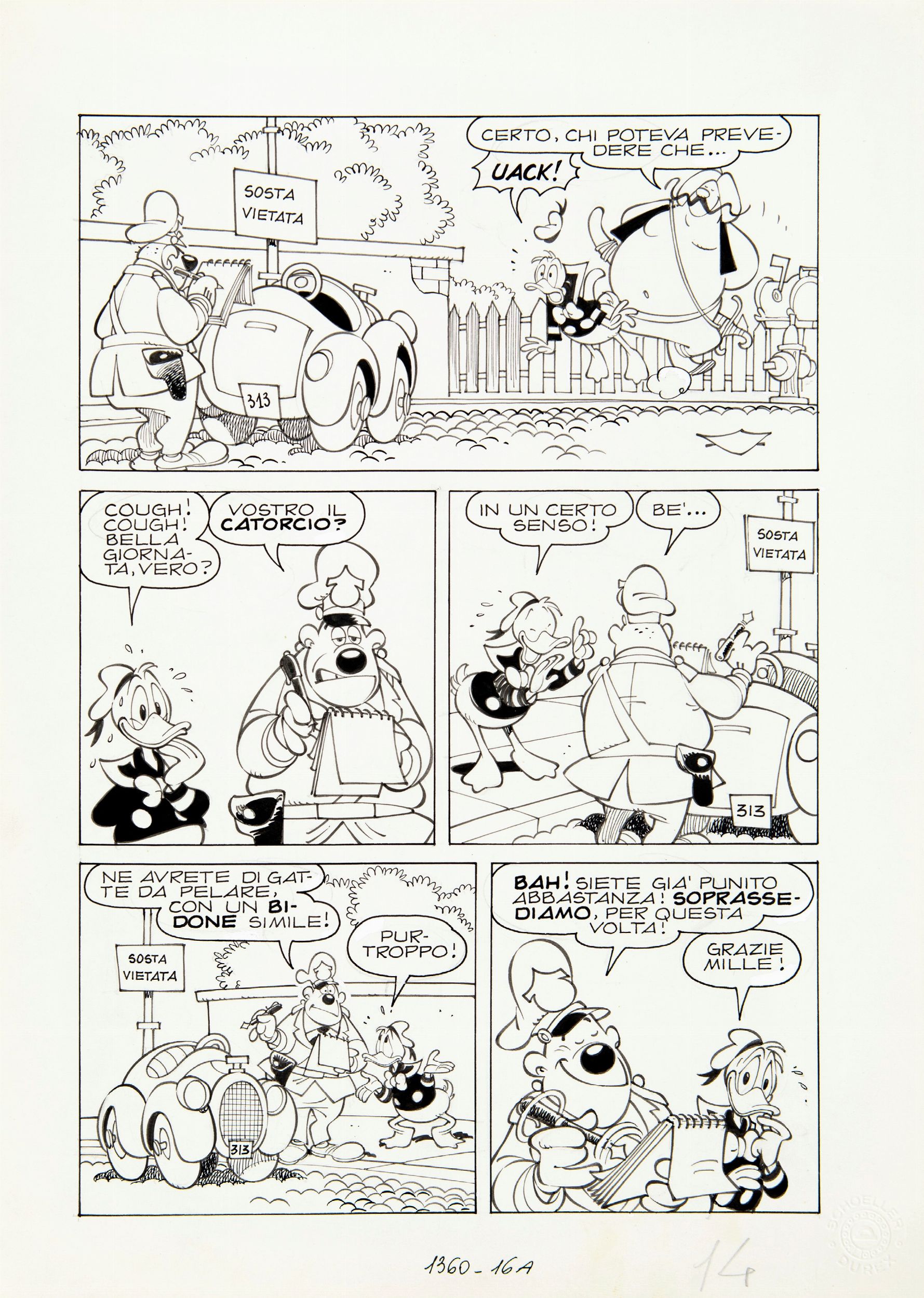 1981 Tavola originale realizzata da Cavazzano per Paperino e il genio maldestro, edita su Topolino n. 1360 a pag. 16 nel Dicembre 1981.