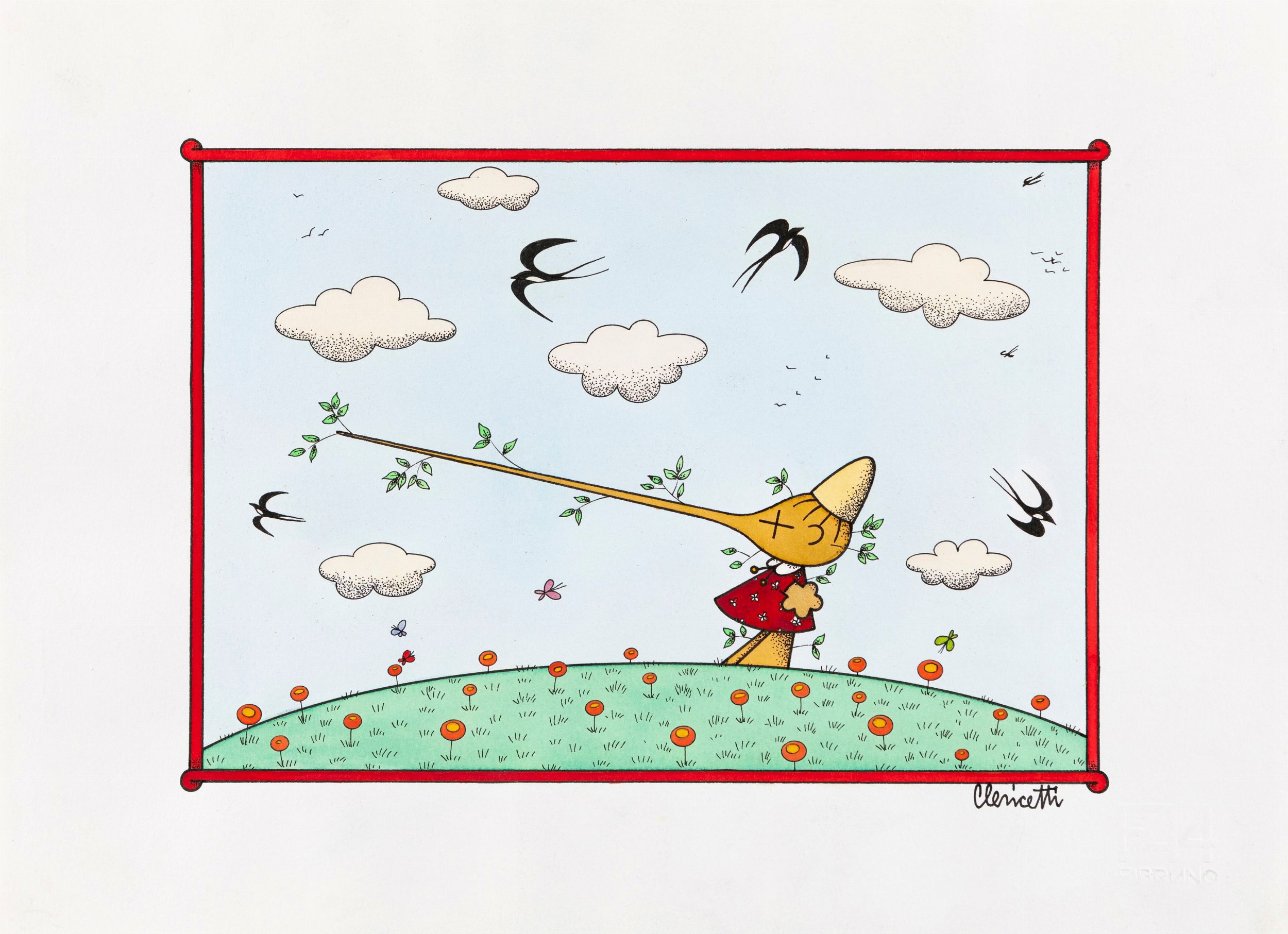 matita, china e acquerello su cartoncino, 33 x 24 cm 1991 Illustrazione originale realizzata da Clericetti in occasione della mostra Pinocchio dal mondo, tenutasi a Padova nel 1991 pubblicata sull'omonimo catalogo a pag. 44 dalla Editoriale Programma nel 1991. Firmata.