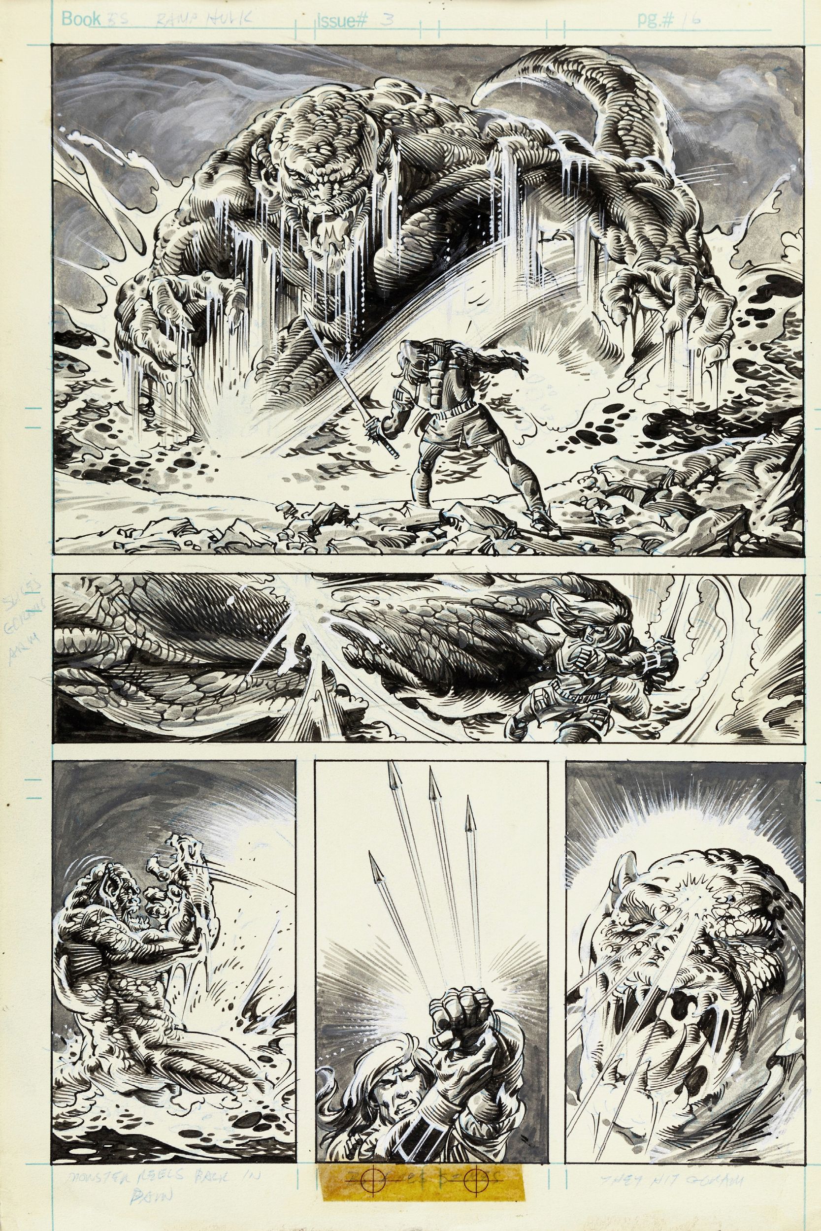 1977 Tavola originale realizzata da Buscema per And There Shall Come Death!, edita su Rampaging Hulk n. 3 a pag. 15 dalla Marvel nel 1977. Si allega la velina con i testi.
