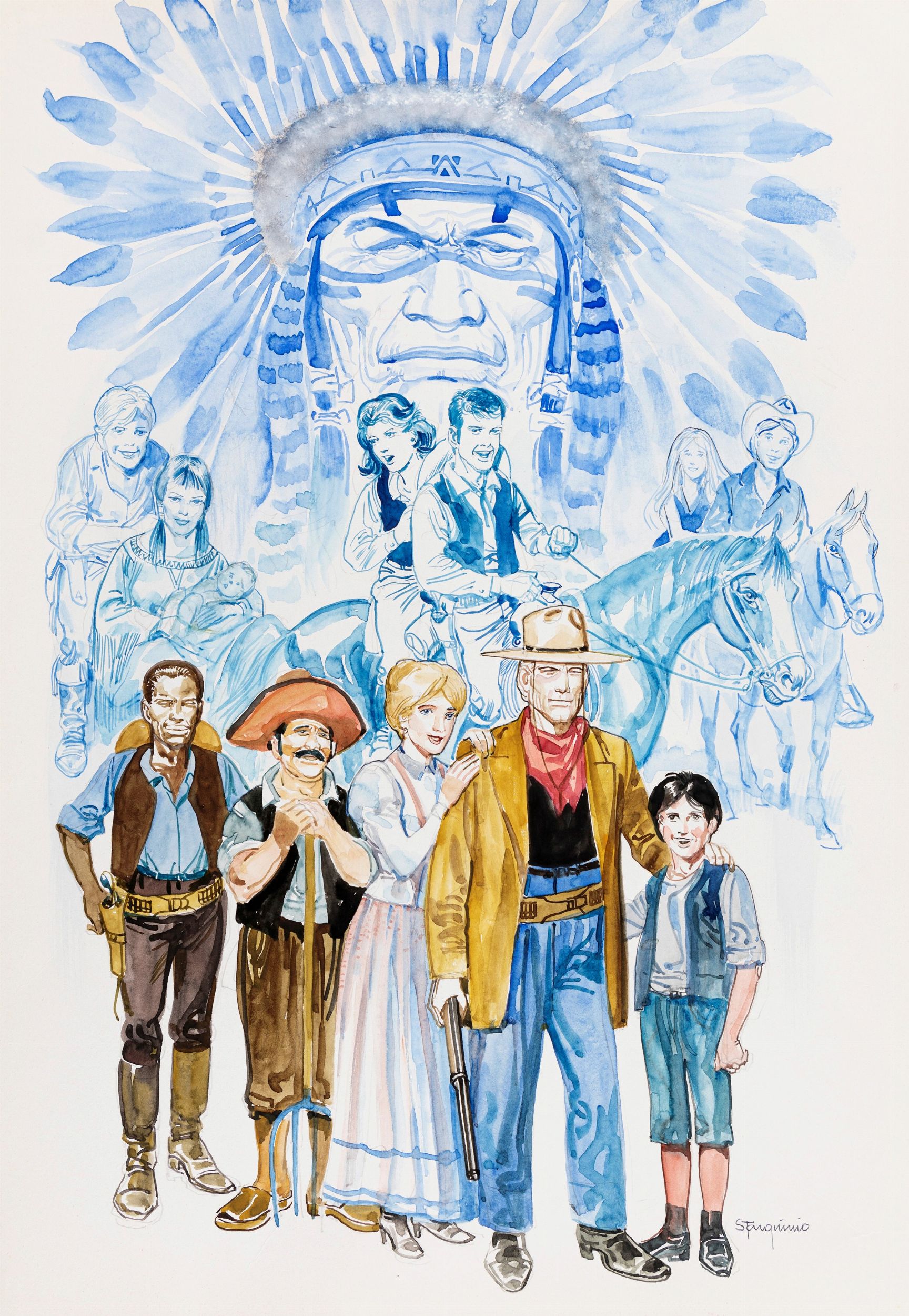 matita, china e acquerello su cartoncino, 35 x 50 cm anni 2000 Originale di copertina inedito realizzato da Tarquinio negli anni 2000 per La lunga marcia, episodio n. 63 della celebre collana Storia del West commissionato direttamente da Sergio Bonelli in vista di una futura ristampa.