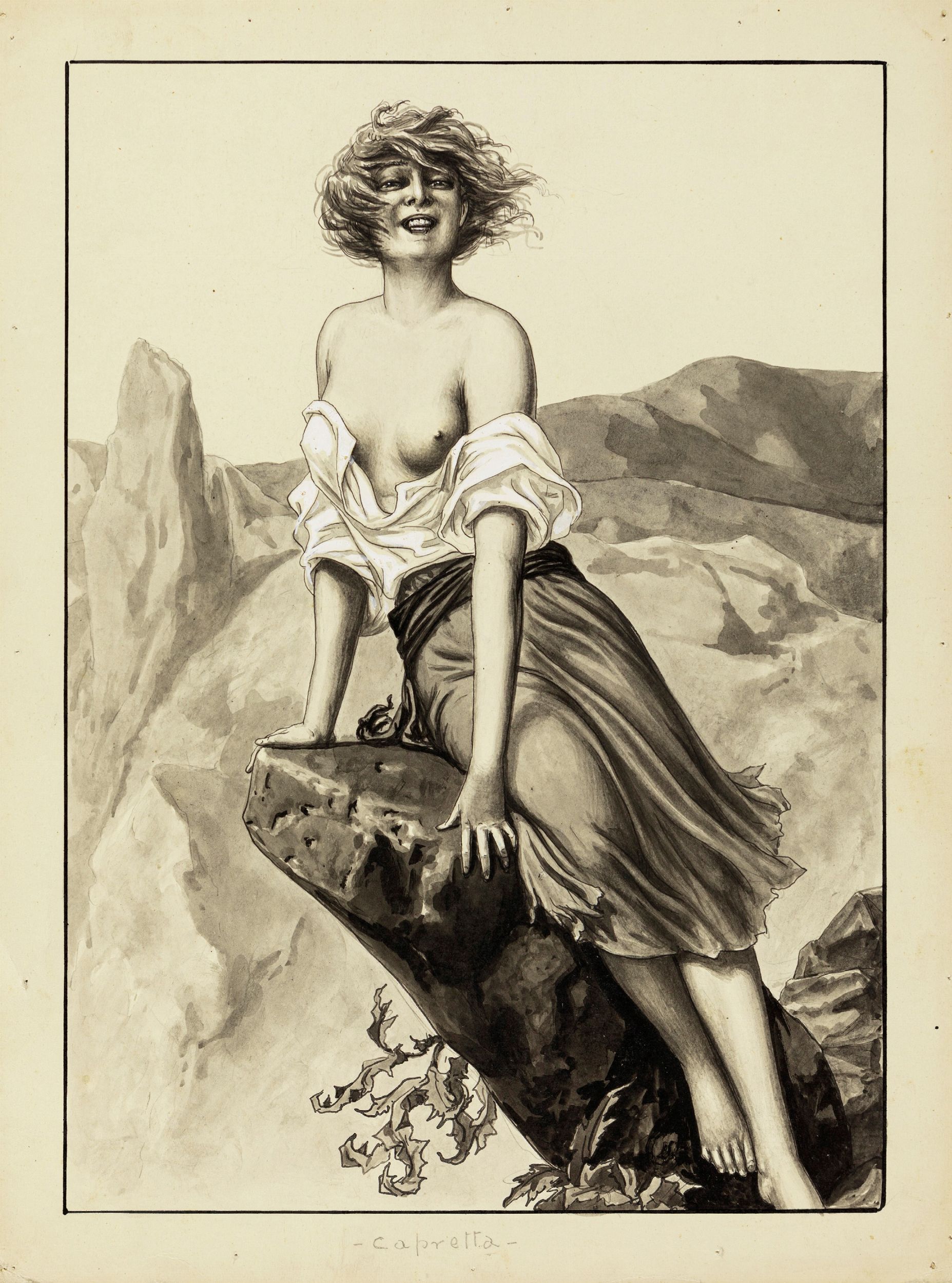 anni '20 Illustrazione originale realizzata da Scarpelli per la rivista erotica La Sigaretta edita da Nerbini negli anni '20. Fori di affissione ai margini.