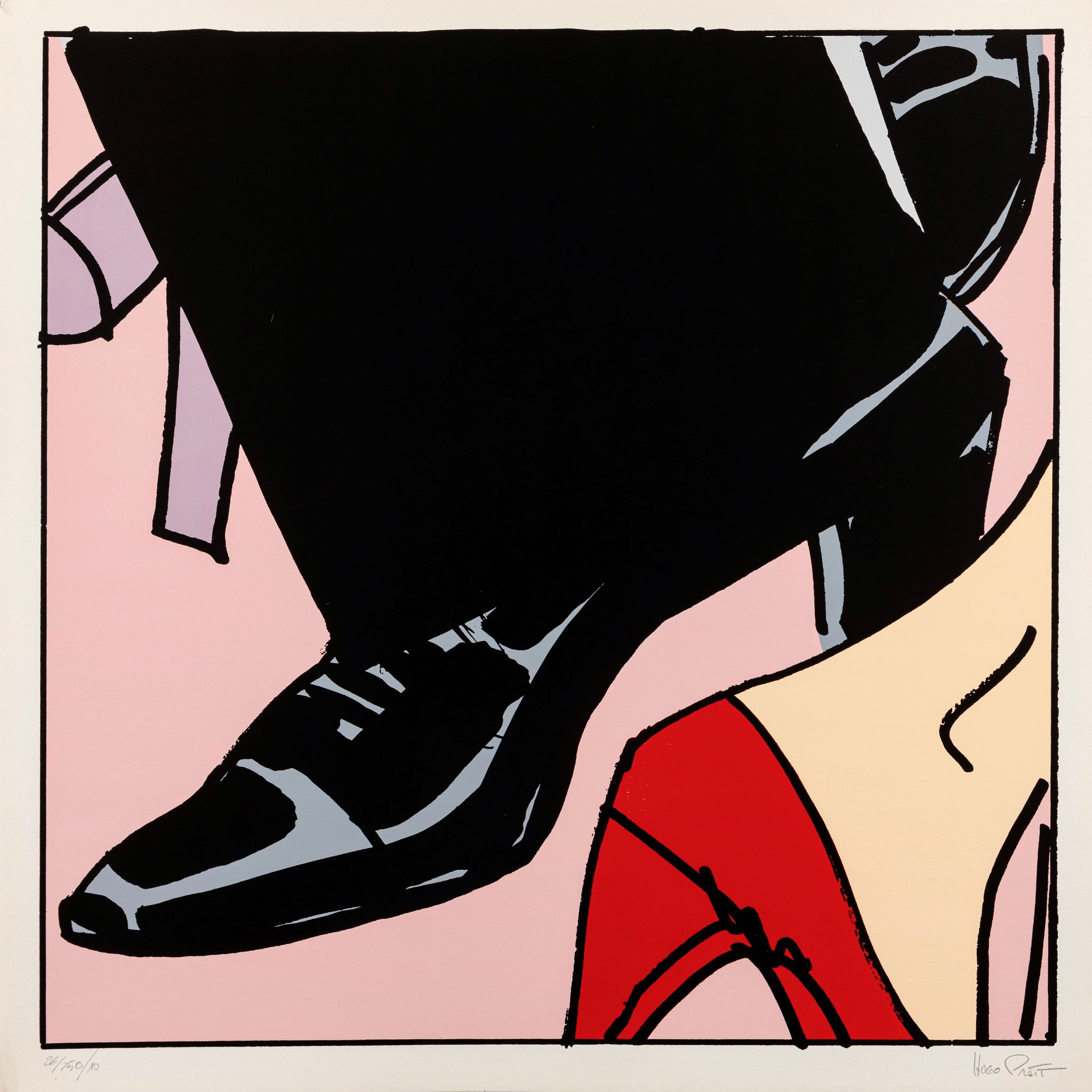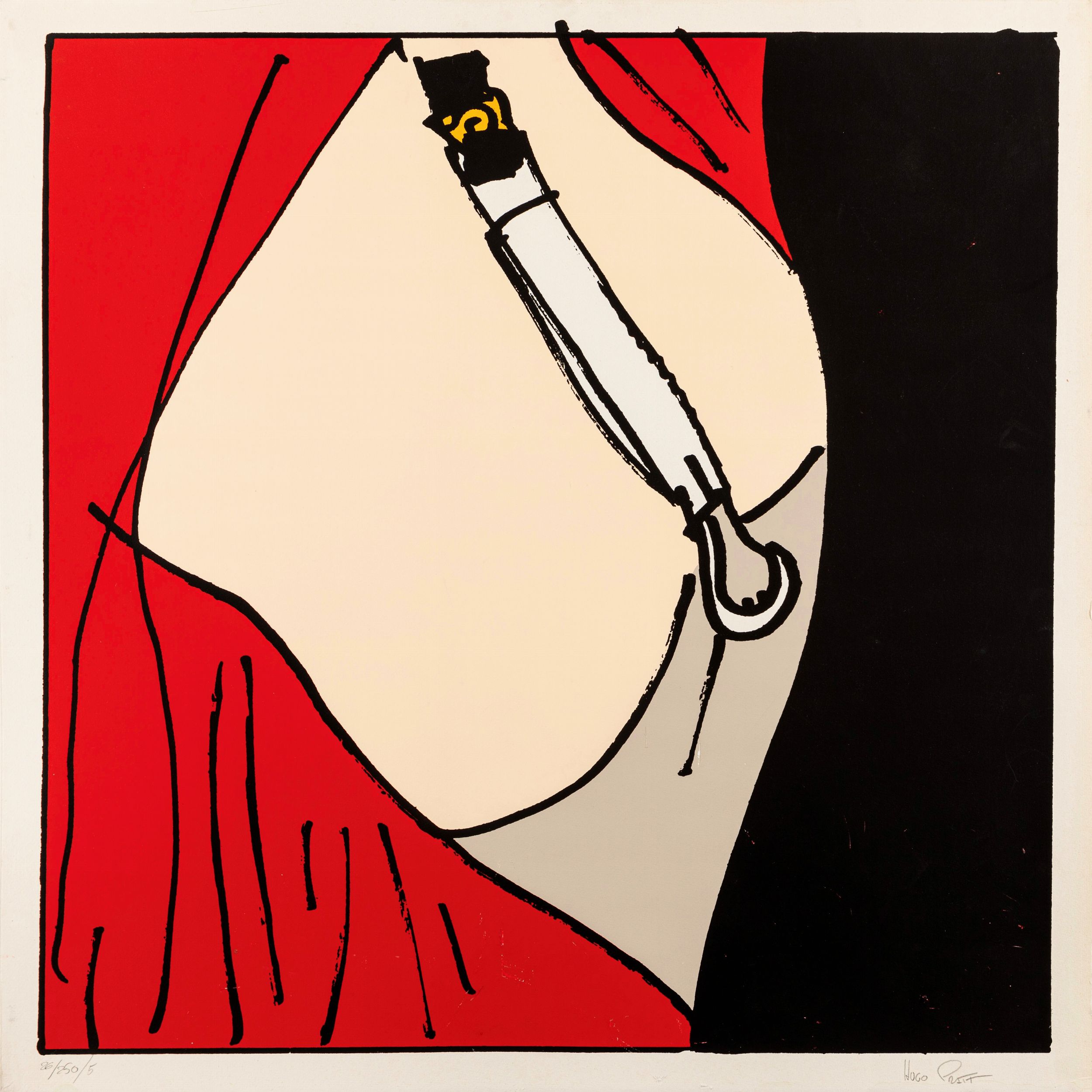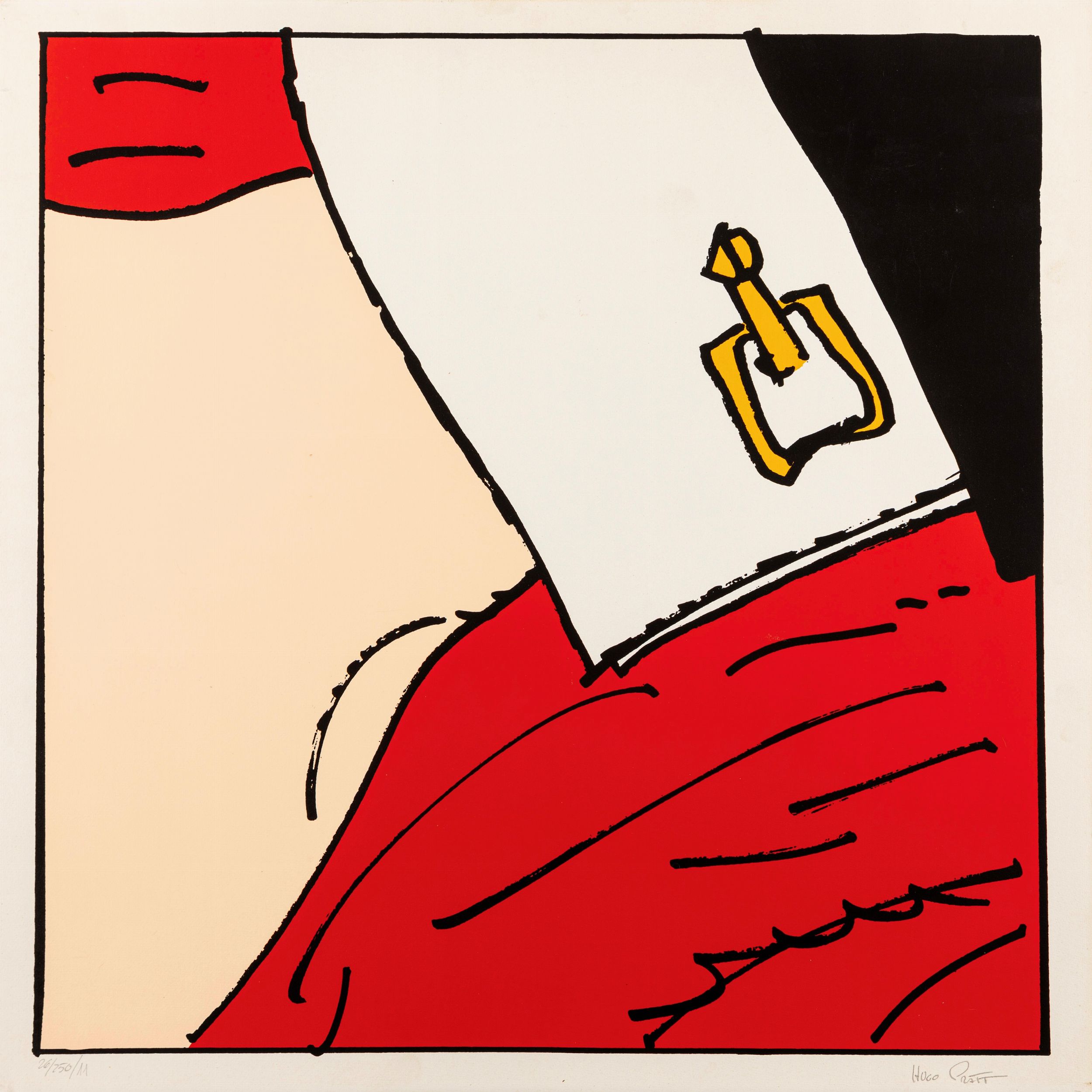 serigrafia su cartoncino, 70 x 70 cm ciascuno 1985 Portfolio Tango completo delle 12 serigrafie tirate a 250 esemplari numerate in cifra araba (nostro esemplare n. 26/250) e del raro cofanetto editoriale, edito dagli Editori del Grifo nel 1985. Serigrafie in ottime condizioni, cofanetto telato con lievi abrasioni e uno strappo restaurato ad un angolo. Firmate a matita da Pratt e numerate.