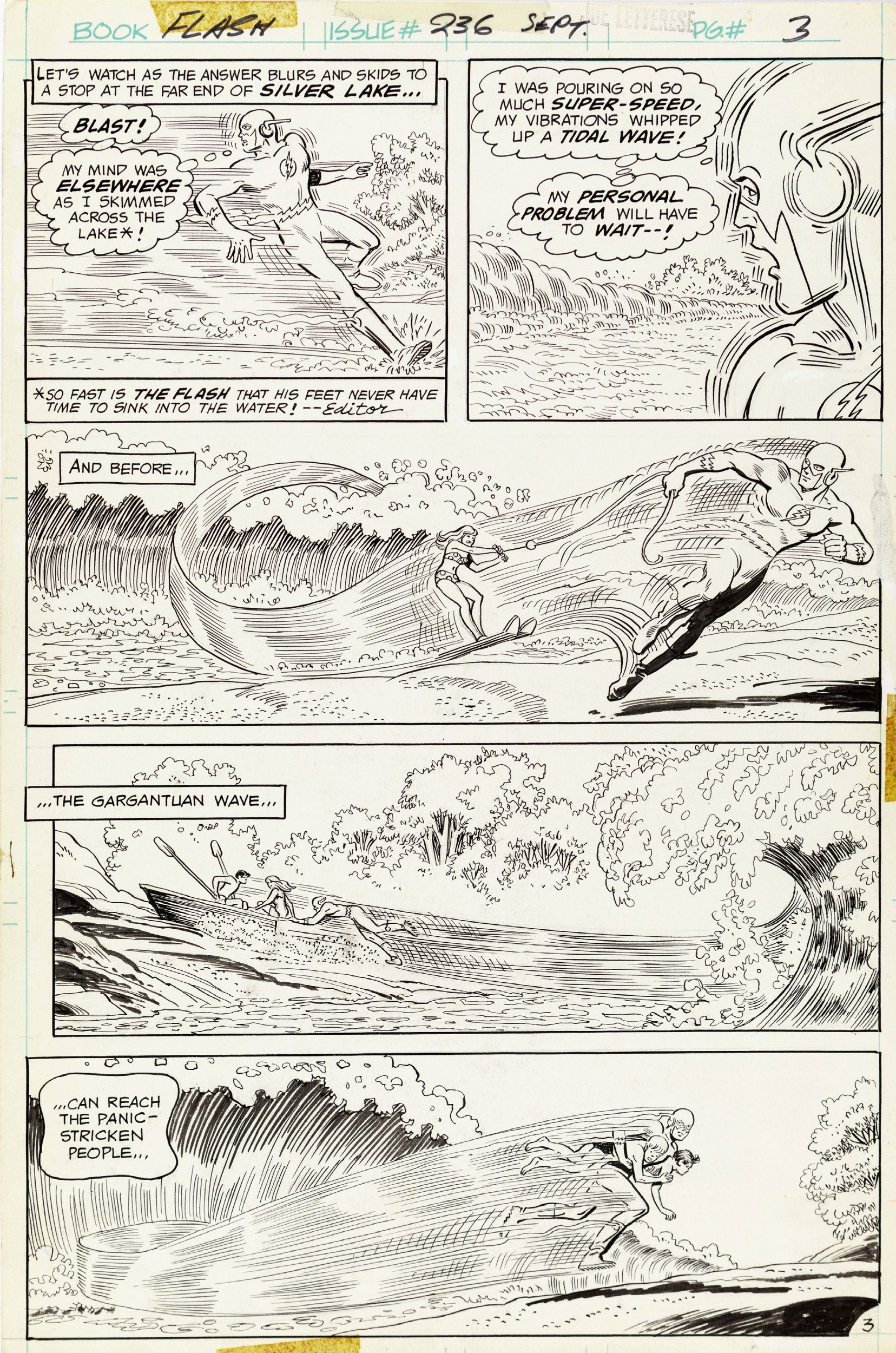 1975 Tavola originale realizzata da Novick per Nowhere On The Face Of The Earth!, edita su The Flash n. 236 a pag. 3 dalla DC nel 1975.